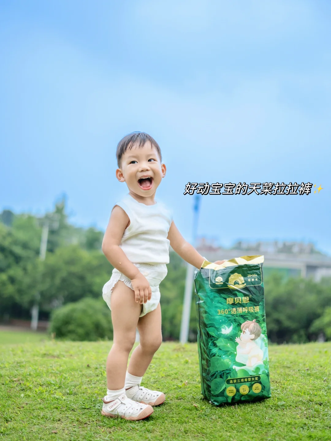 🌈当然,宝宝快乐的前提是他能在夏天🌞舒舒服服的自由玩耍,pp首当其冲,不能闷🙅不能捂,不然就会长疹子红pp,所以在夏天来临之前我就给均均换了摩贝恩360°超薄呼吸裤!