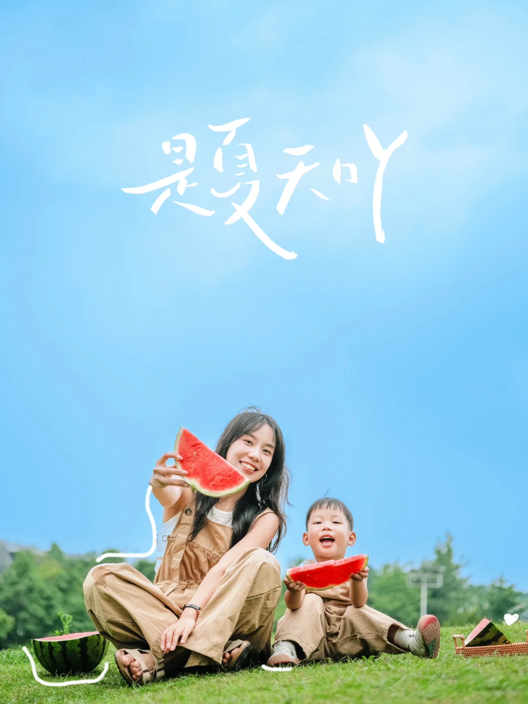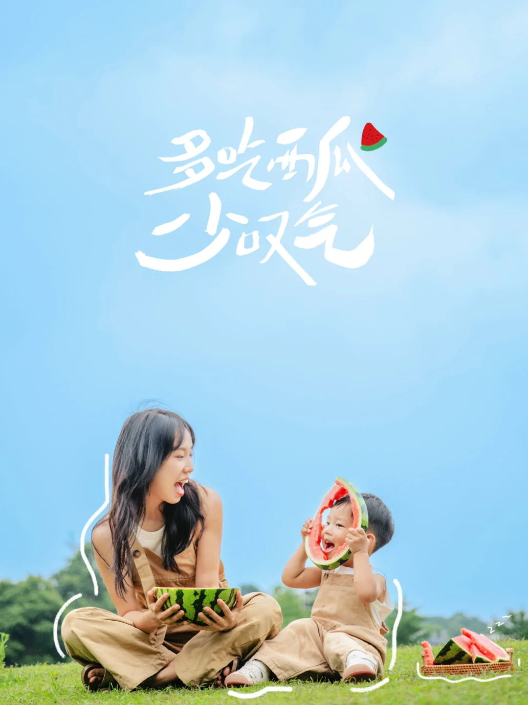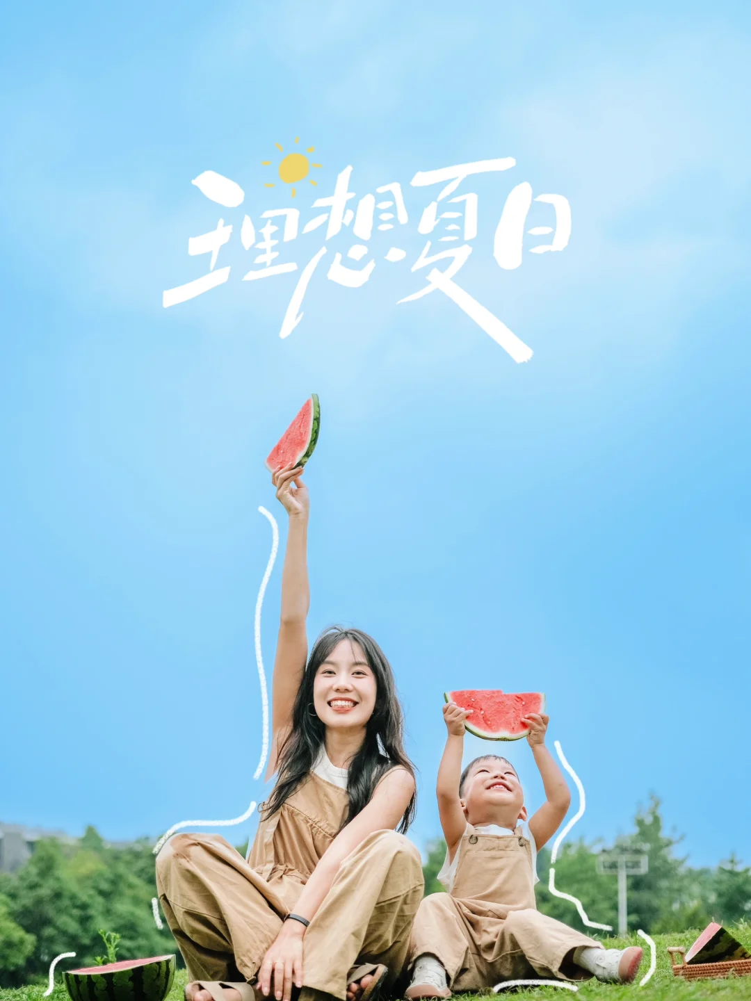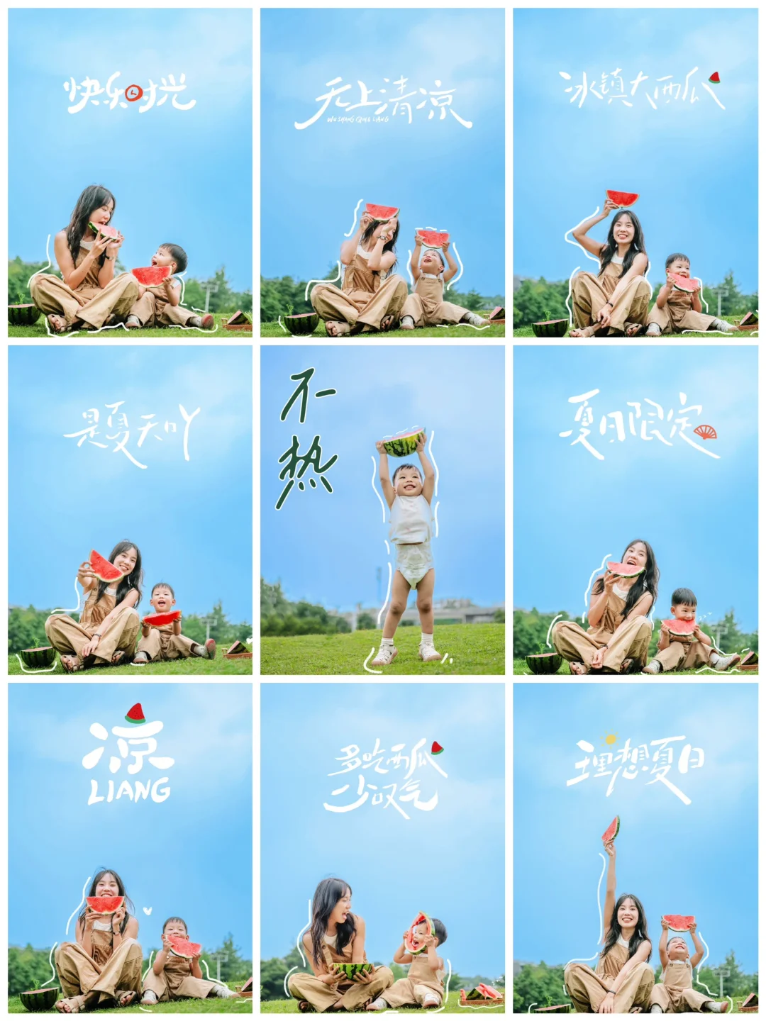 带着瓜🍉,带着娃,在公园里拍一组这样【夏天】的亲子照