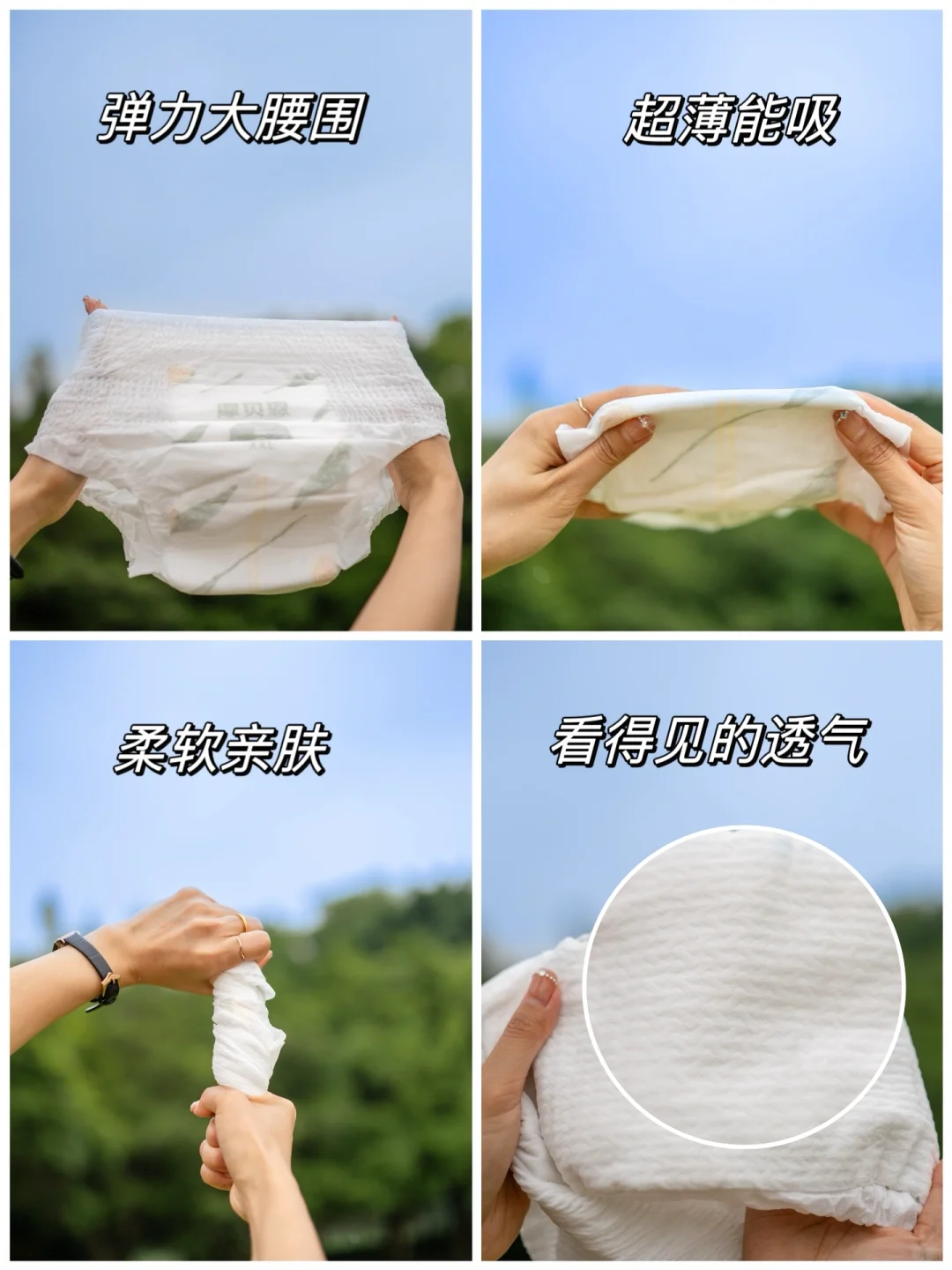 🌈它从面层、芯体、底层到腰围,做了全方位⭕️透气设计,芯体只有0.08cm,仅普通纸尿裤的1/3,让宝宝的pp可以尽情深呼吸😮💨,即使在户外玩耍得满头是汗,小pp也没有红pp的情况!