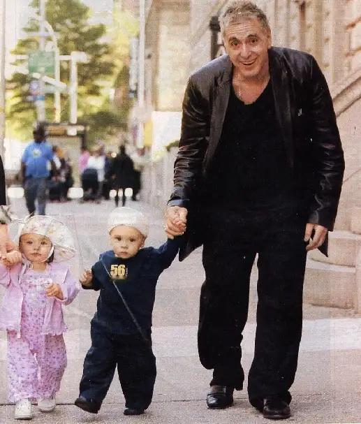阿尔帕西诺和Jan Tarrant有一个35岁的女儿朱莉,和Beverly D'Angelo有一对儿23岁的龙凤胎奥利维亚和安东。去年83岁的他与29岁女友Noor Alfallah生下儿子罗曼。