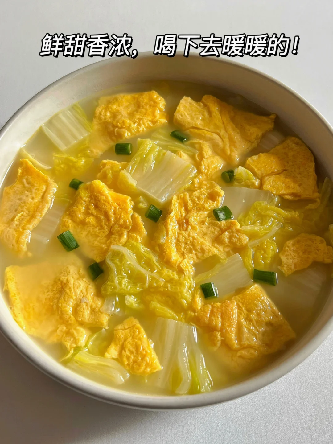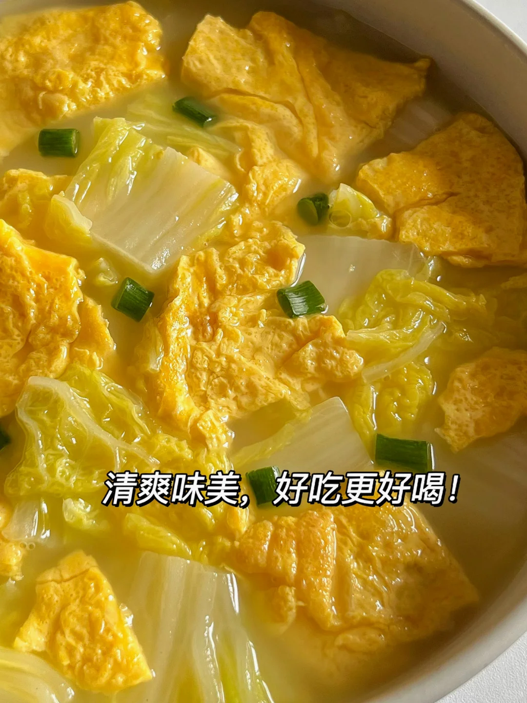 减脂期晚餐不知道吃什么?姐妹们可以来试试这道暖暖的白菜鸡蛋汤🥣 鲜甜香浓,清爽低脂 ‼️ 一口汤汁,一口白菜鸡蛋,真滴太安逸啦[偷笑R]