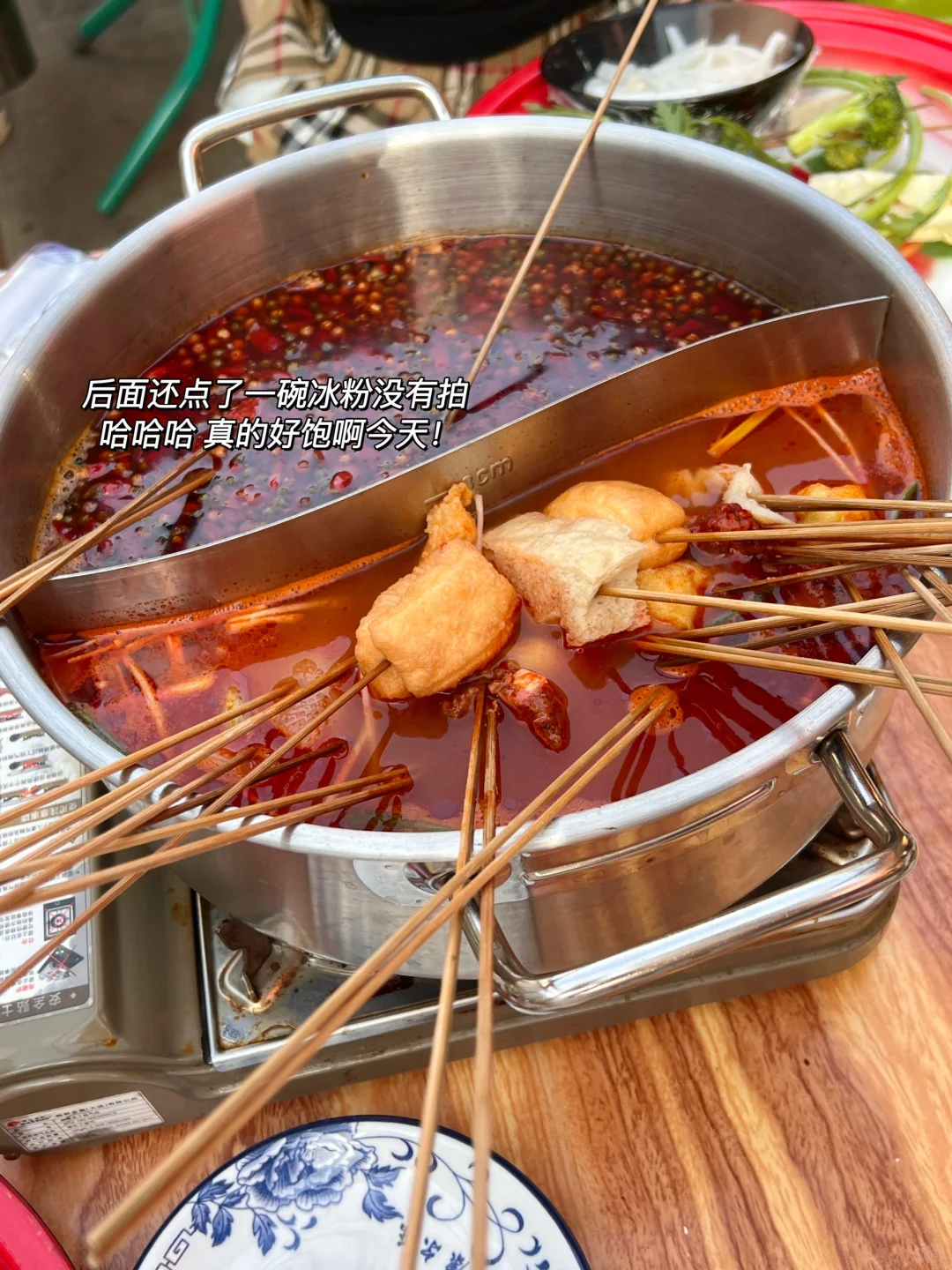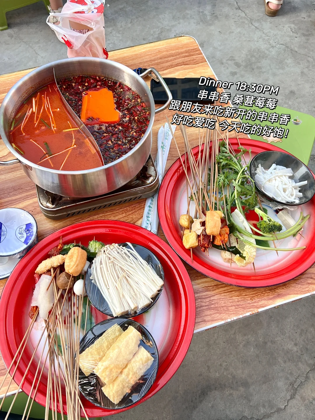 晚上跟朋友来了一家新开的串串香🍢 今天尊嘟吃的好饱好饱 吃完饭又去散散步 走了一万多步 四舍五入消化完了 嗯嗯..