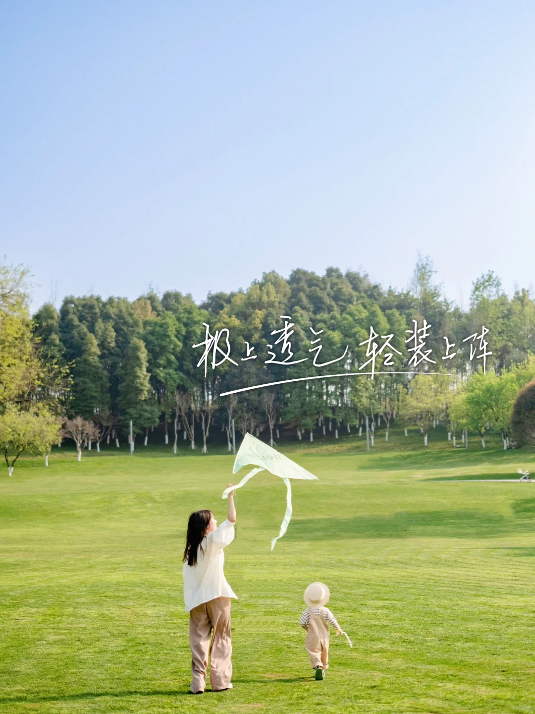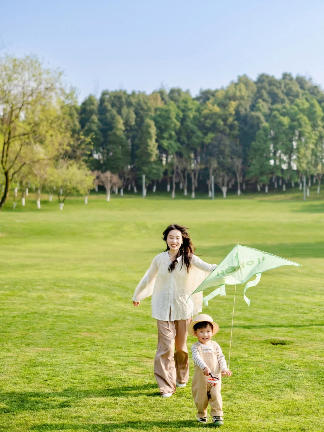 ✨选择宽旷的草坪、天空☁️拍摄,妈妈和宝宝一起奔跑放风筝,让工具人抓拍