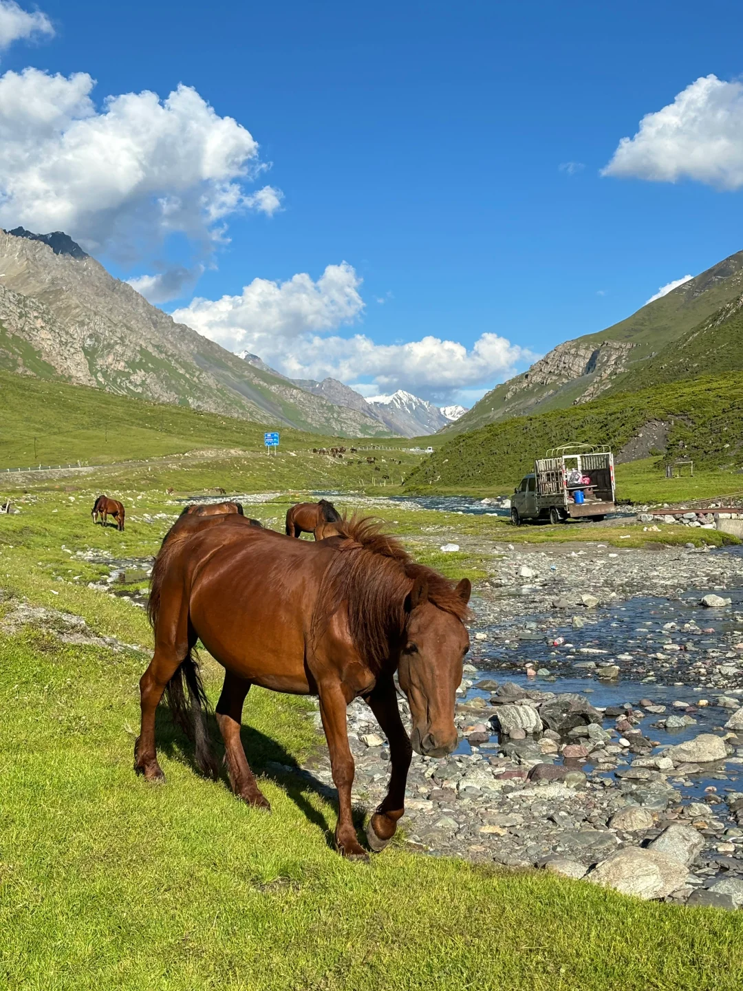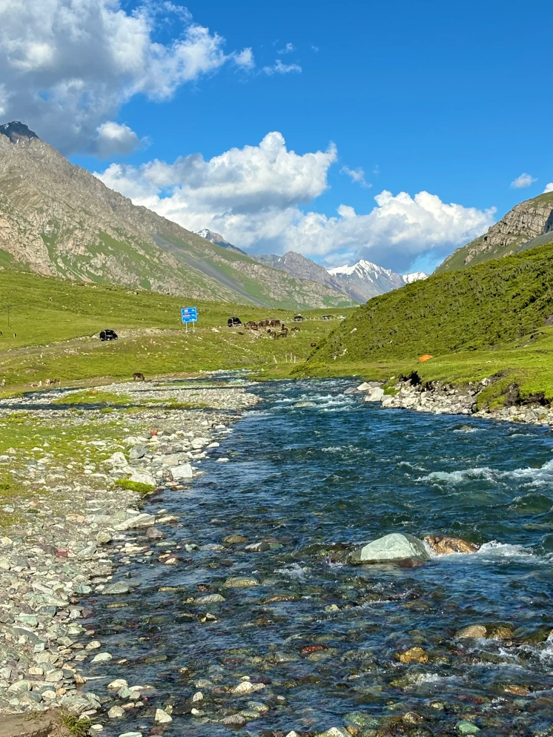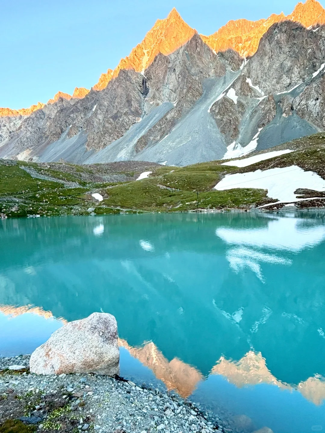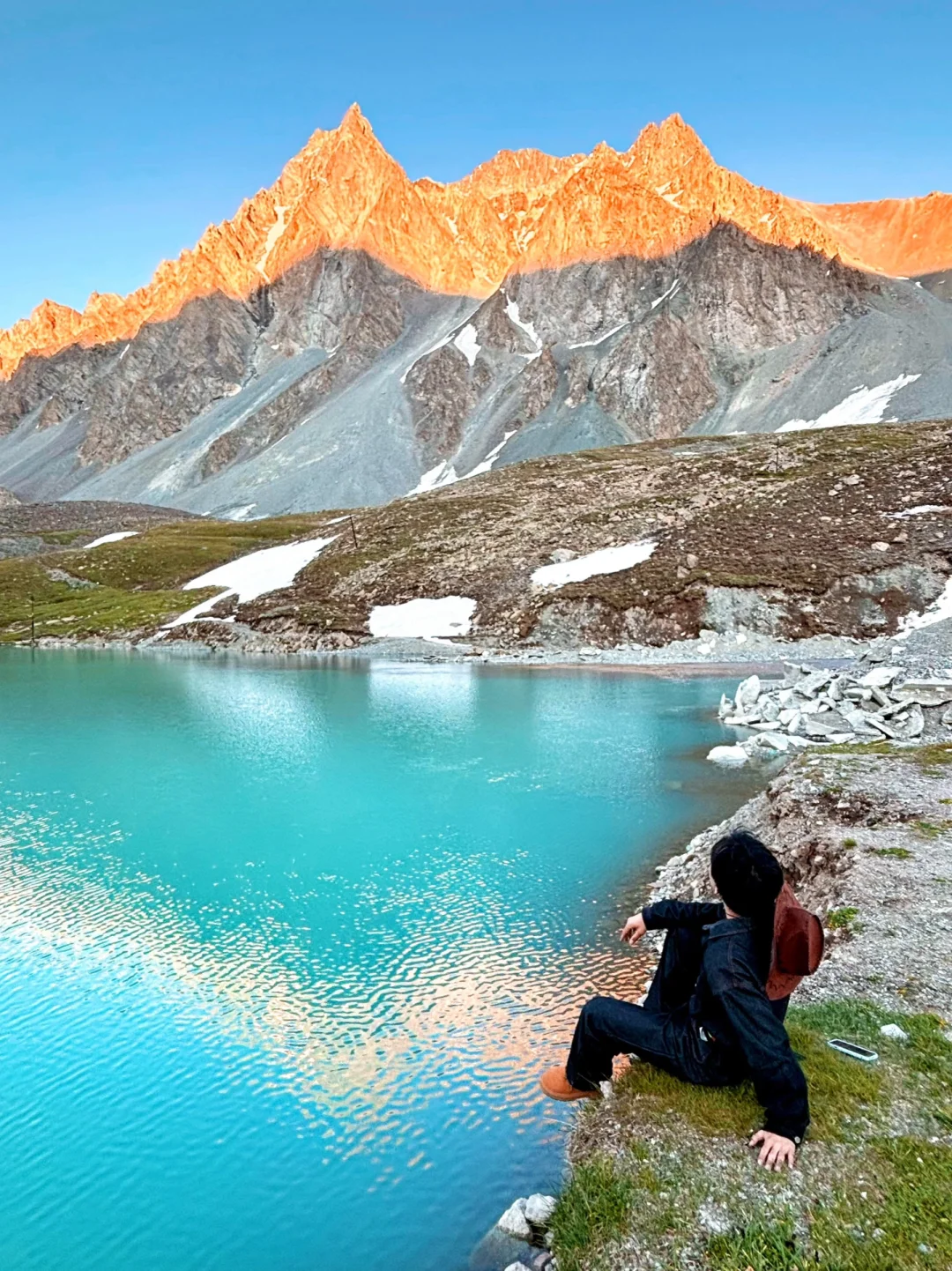 特别是从那拉提往返乌鲁木齐必经这一段的独库公路,一路都会被“震撼”到。雪山、溪流、草原、羊群……等等,新疆所有景色都能在这条路上看到!特别是这蓝色的湖泊配上日照金山⛰️,真的看一眼就会沦陷。