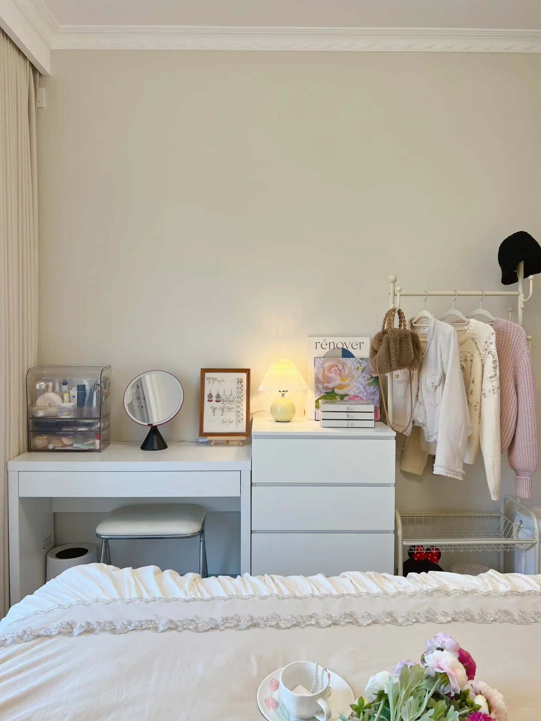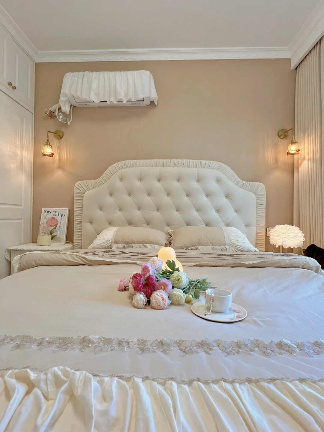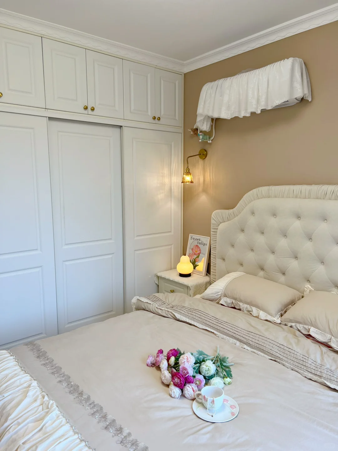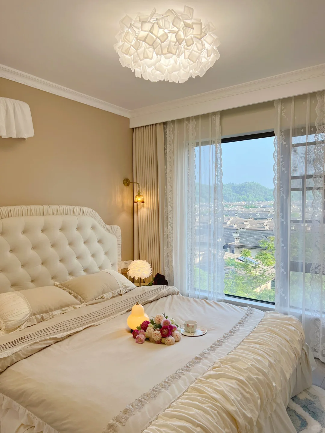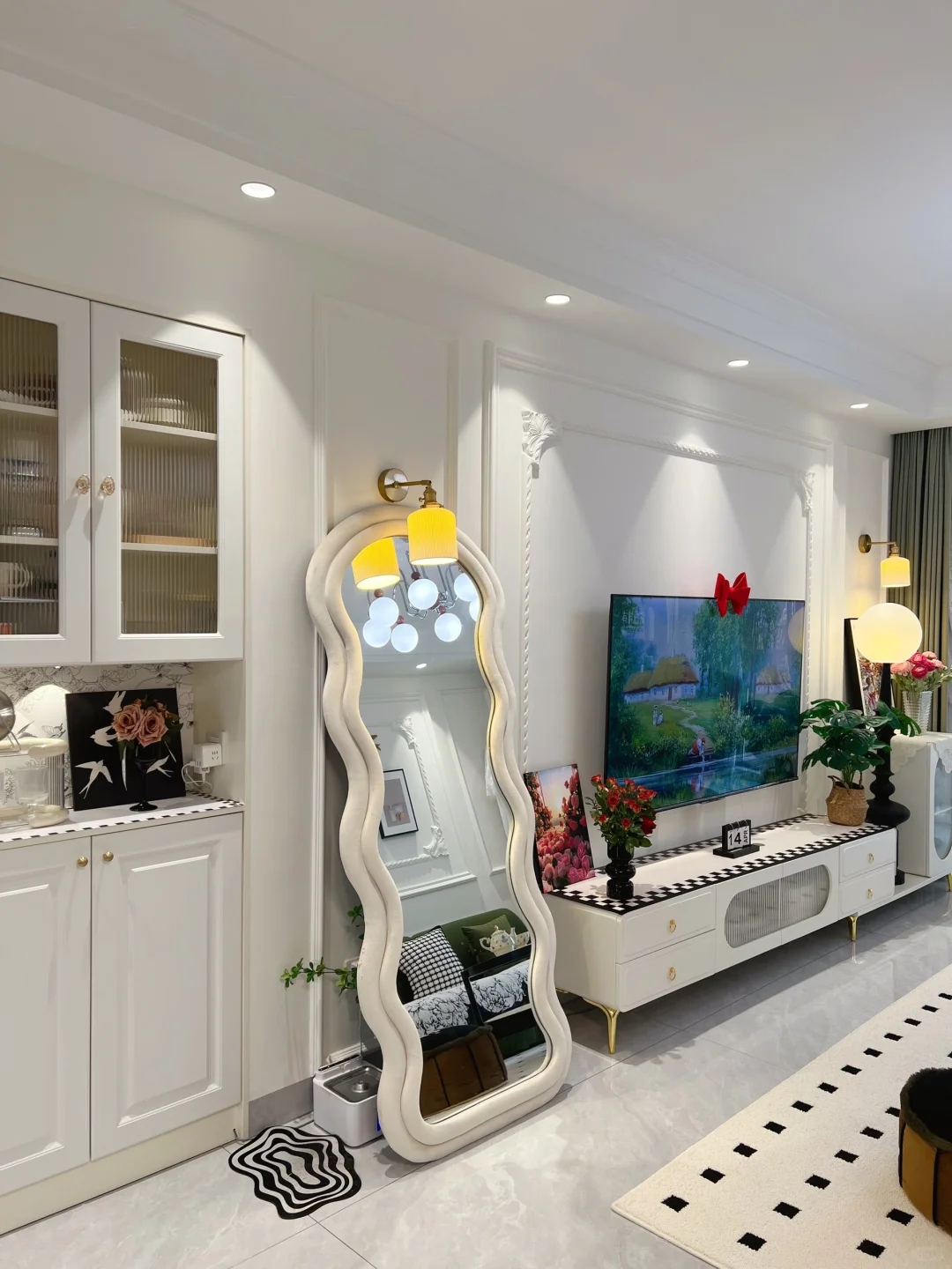 套内只有90平,看起来却像120! 自装的法式风和小户型的适配度太高了 硬装墙面简单的乳胶漆和石膏线 地面直接浅灰色瓷砖通铺,虽然缺点氛围感 但入住发现瓷砖真的很好打理!!! 软装配硬装色系,黑白绿三色为主 层次丰富,充满法式的浪漫氛围感 不喜欢黑白灰的,真的可以试试法式风