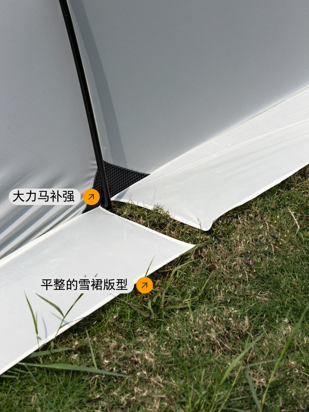 面料,帐杆,拉链等等都很熟悉了,除了这些,还可以看看这几处细节的处理,例如受力点的补强,这里是受力最大的位置,也是最容易崩坏撕裂的地方之一,例如雪裙的版型,宽度,以及是否贴地,天窗的是否防水,有时候突如其来的大雨会来不及挂顶布,例如内帐,版型是否挺阔,和外帐不会摩擦在一起,尤其是风雨交加的时候,内帐与外帐相互摩擦也会导致渗水。更多的帐篷介绍可以点击下方🔗,有更详细的信息。