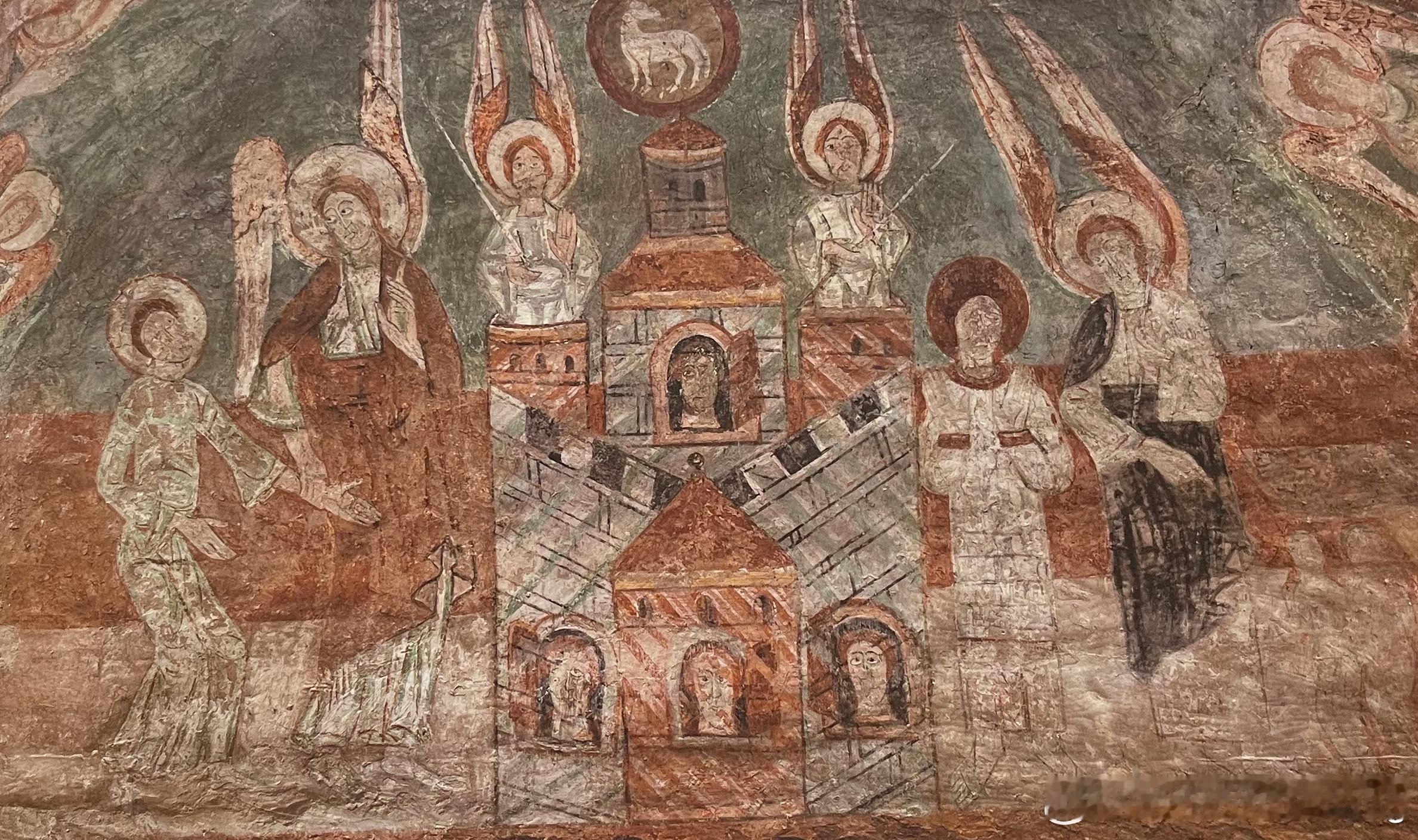 在圣约翰的《启示录》中,耶路撒冷新城--圣城--是一个超越最后审判及世界末日的末世象征。书中多次提及《旧约》中的天堂,援引基督信仰神学,指出时间尽头的救赎将会使世界回到理想状态。因此,对天上的耶路撒冷的描绘在罗马式艺术中意义崇高,在壁画中尤其如此。