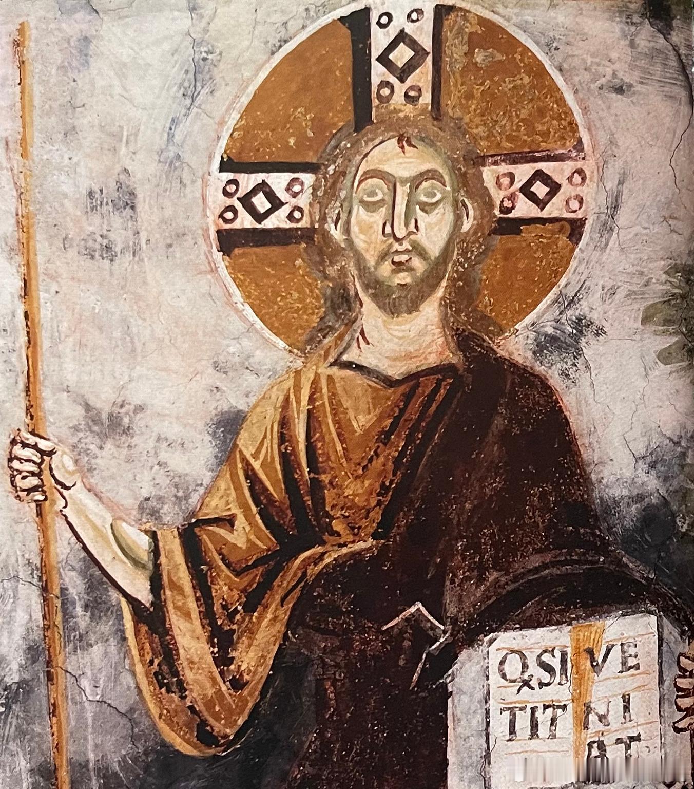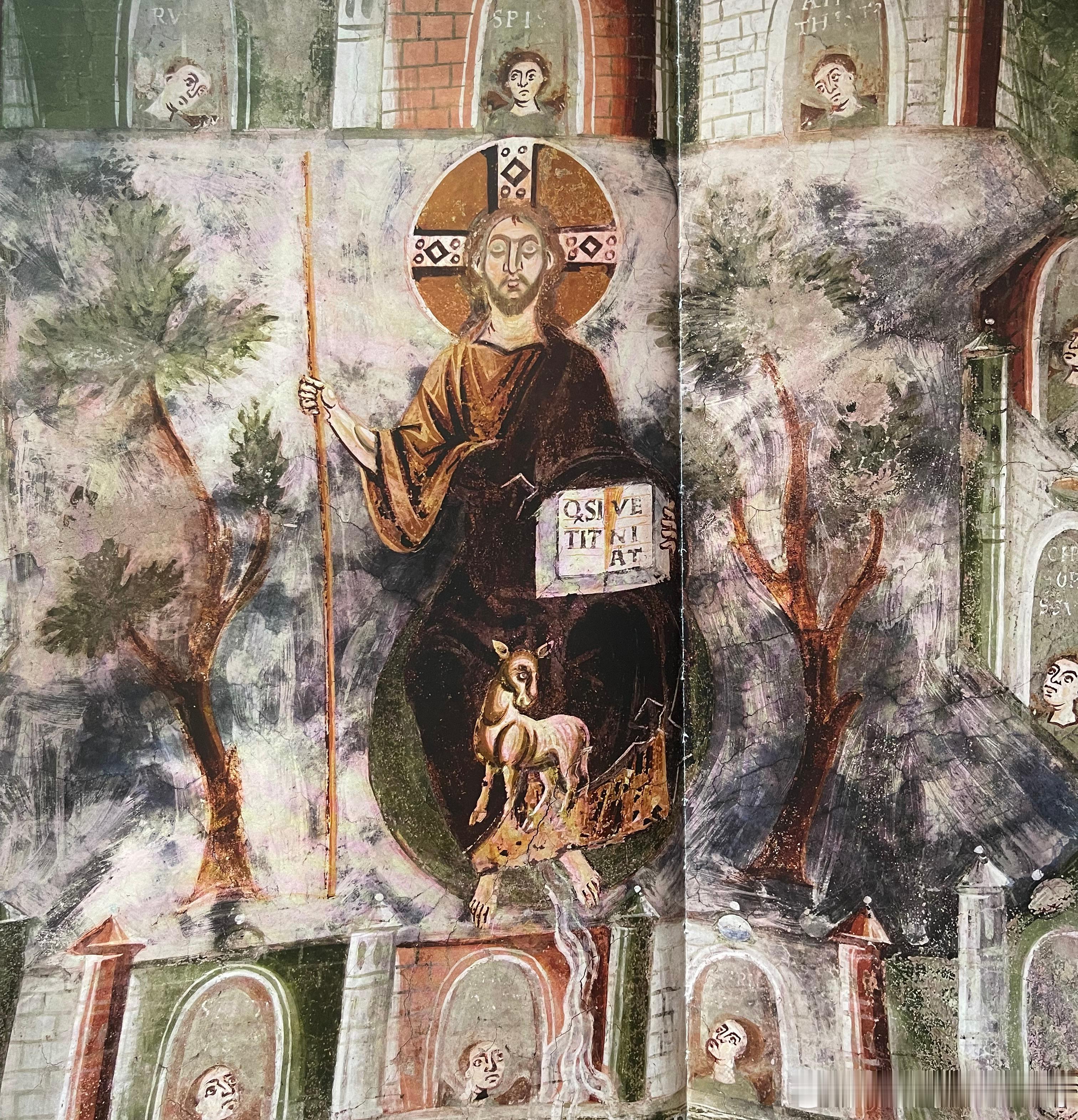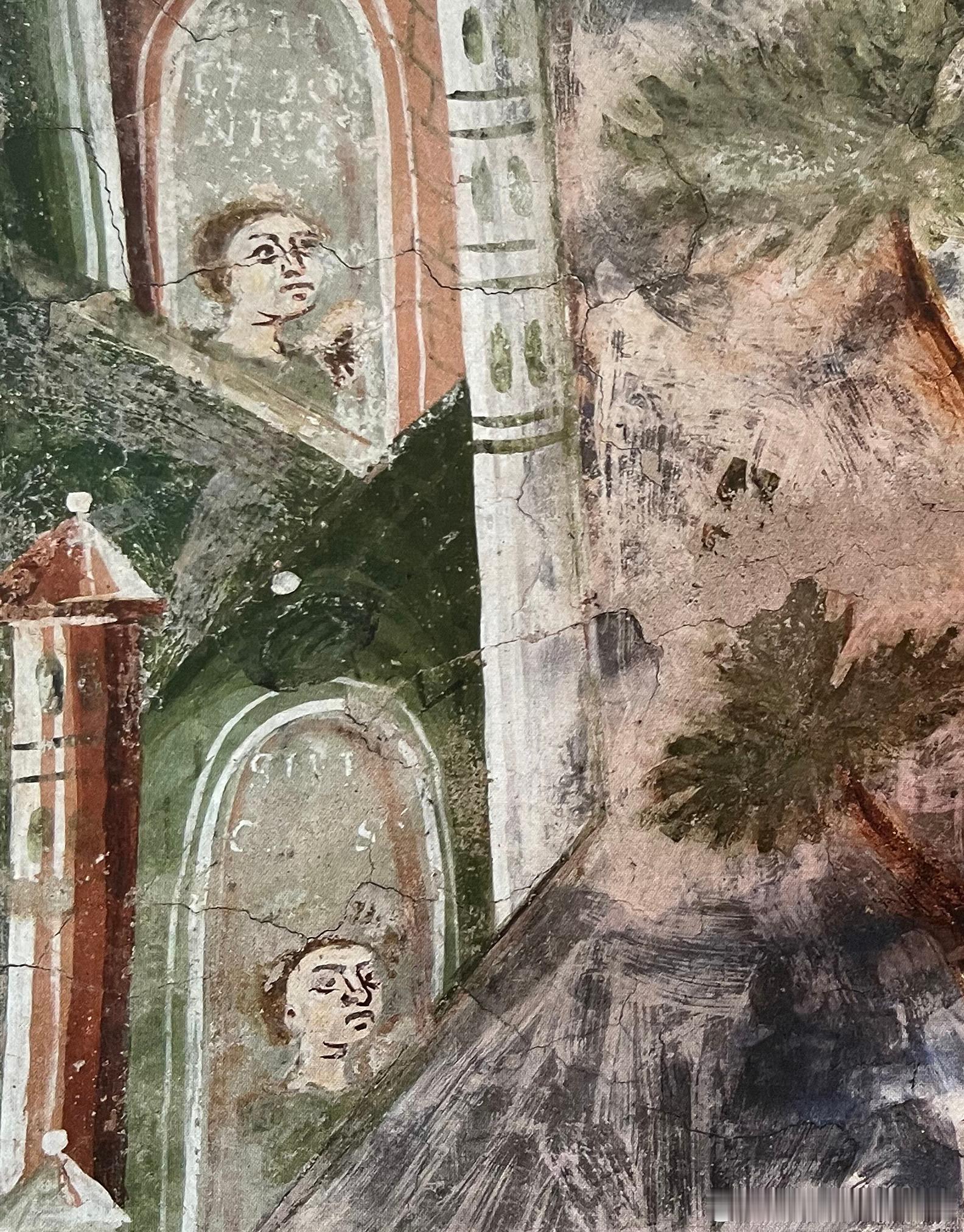 图4-6.天上的耶路撒冷,12世纪90年代,湿壁画,奇瓦泰的圣伯多禄山上圣堂,入口大厅东墙