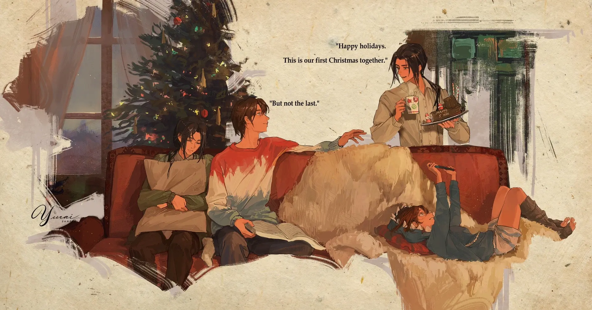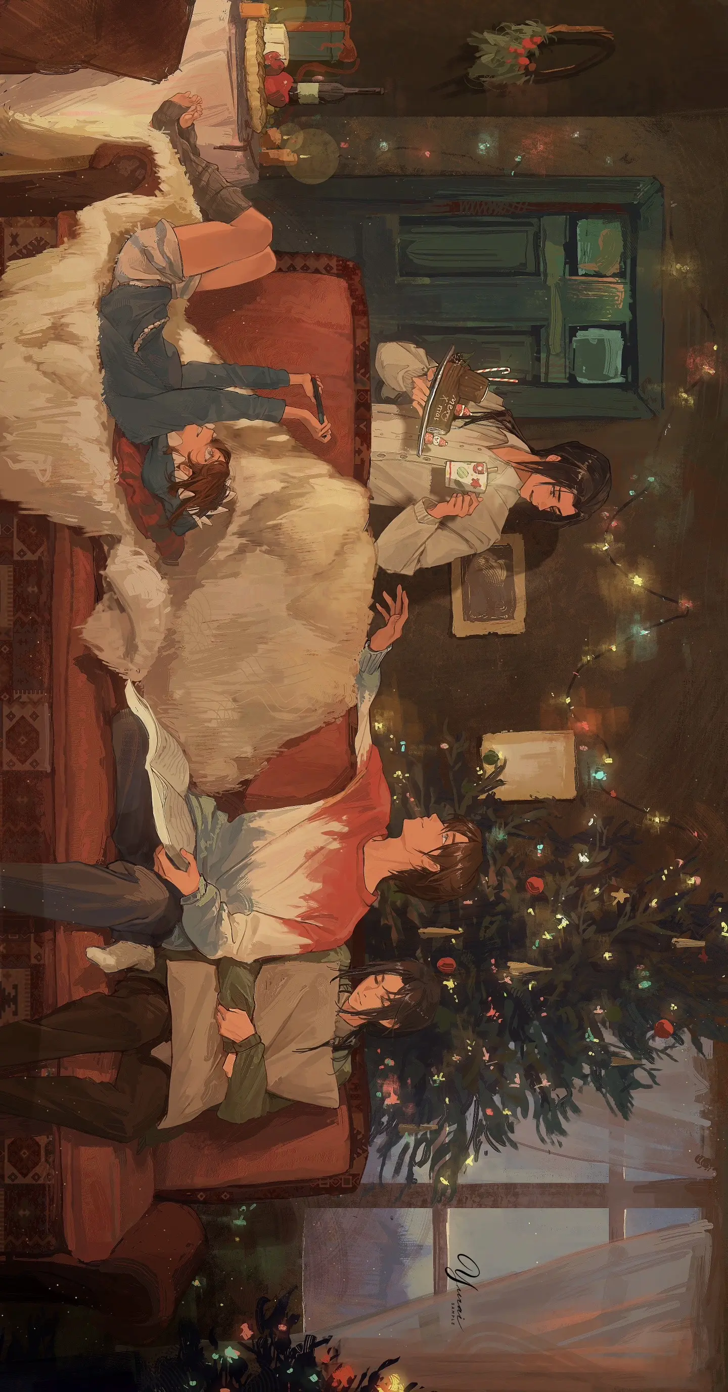 2023最后一张稿子是圣诞委托;)p1是新的构图尝试,意外的挺好看!嘿嘿