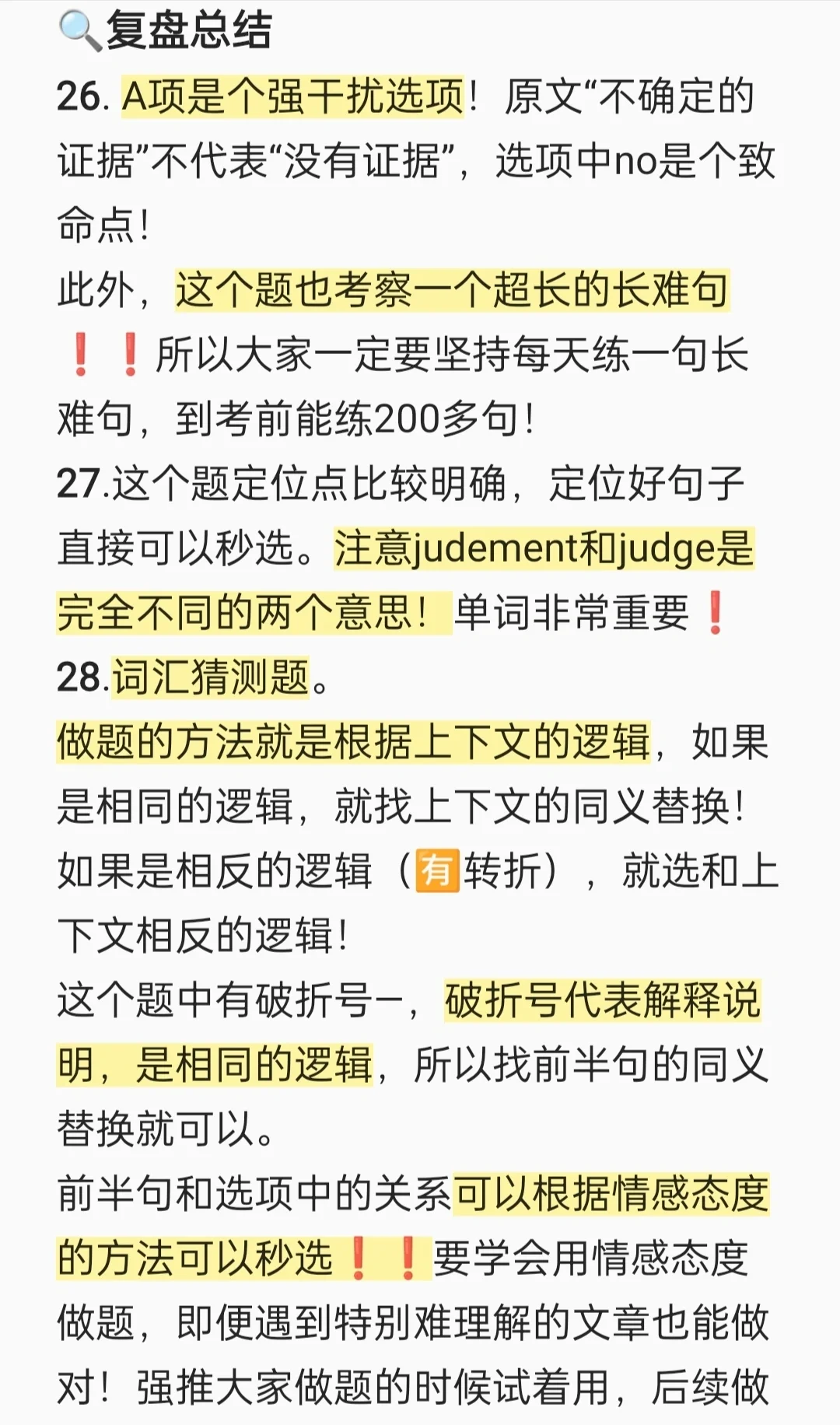 前半句和选项中的关系可以根据情感态度的方法可以秒选❗❗要学会用情感态度做题,即便遇到特别难理解的文章也能做对!强推大家做题的时候试着用,后续做题的时候我也会不断强化❗❗