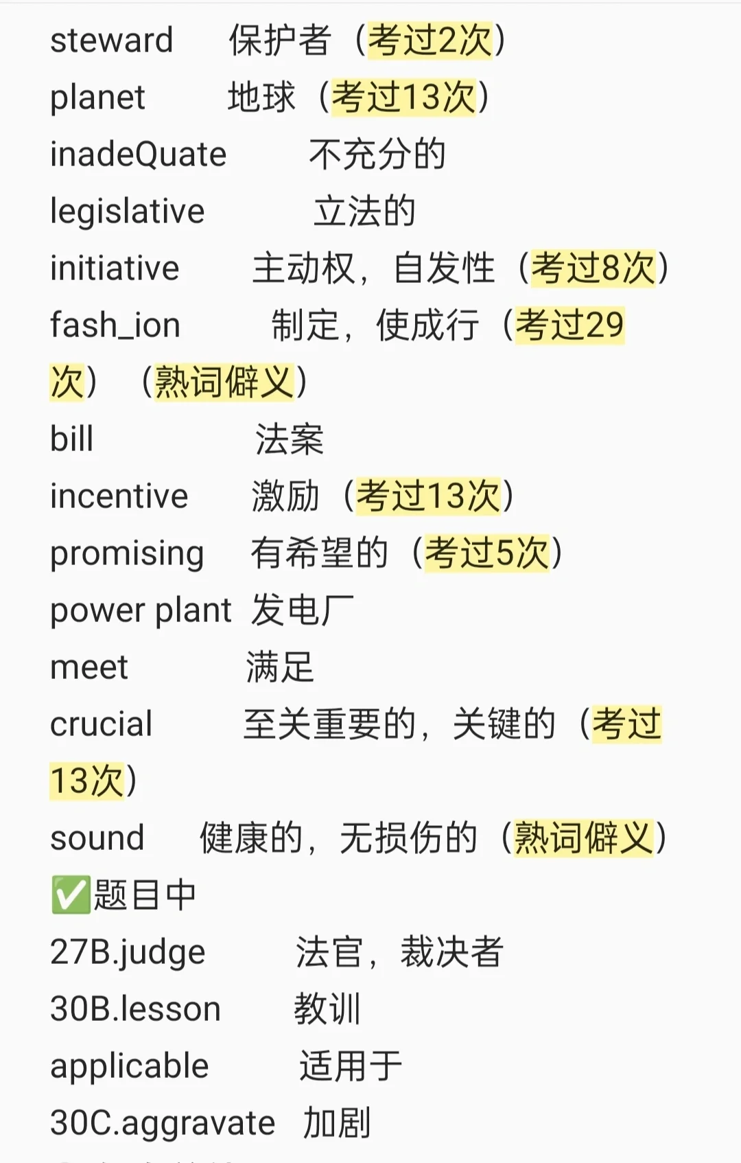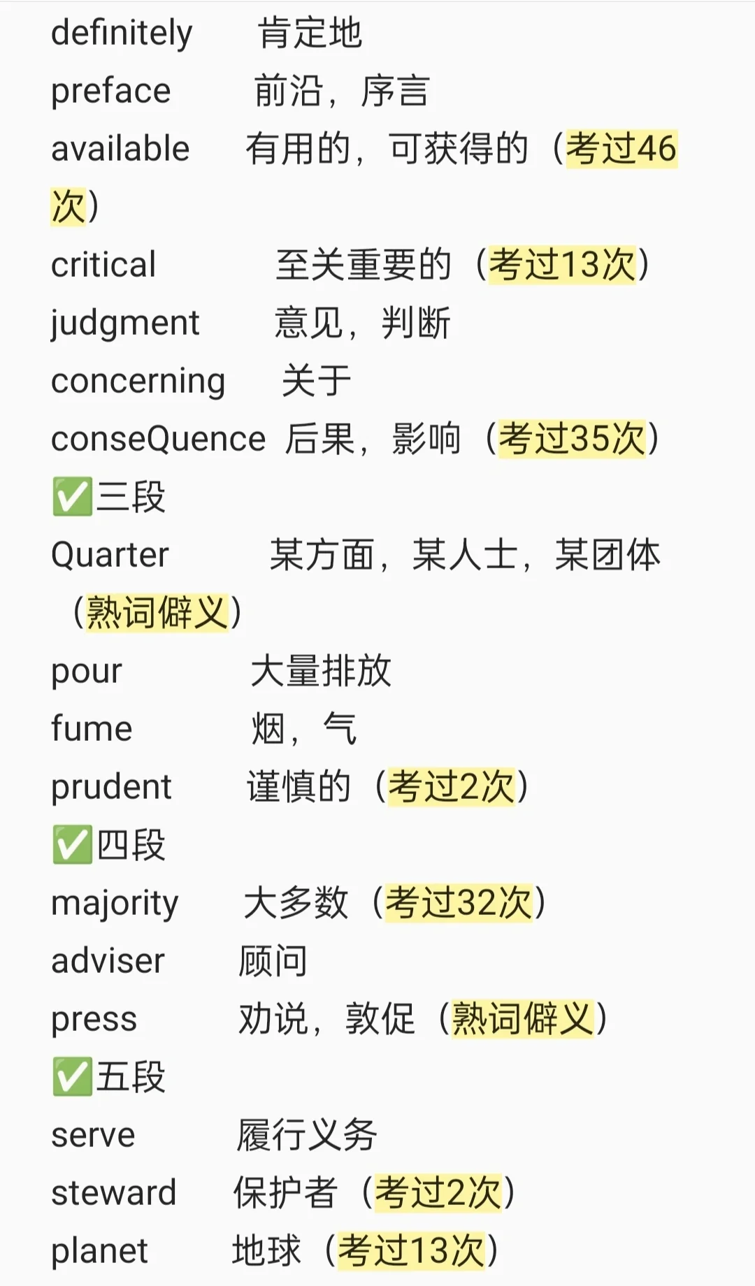 ❗❗单词后标注的(考过n次)是在历年真题中考过的次数,为了提醒大家这个单词的重要程度!