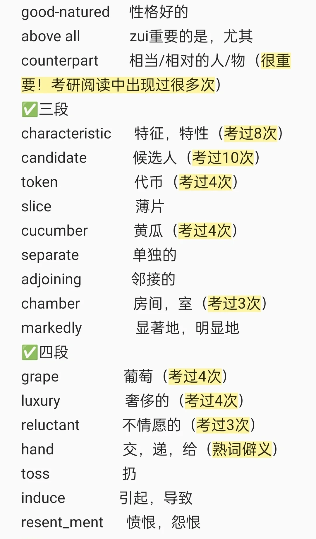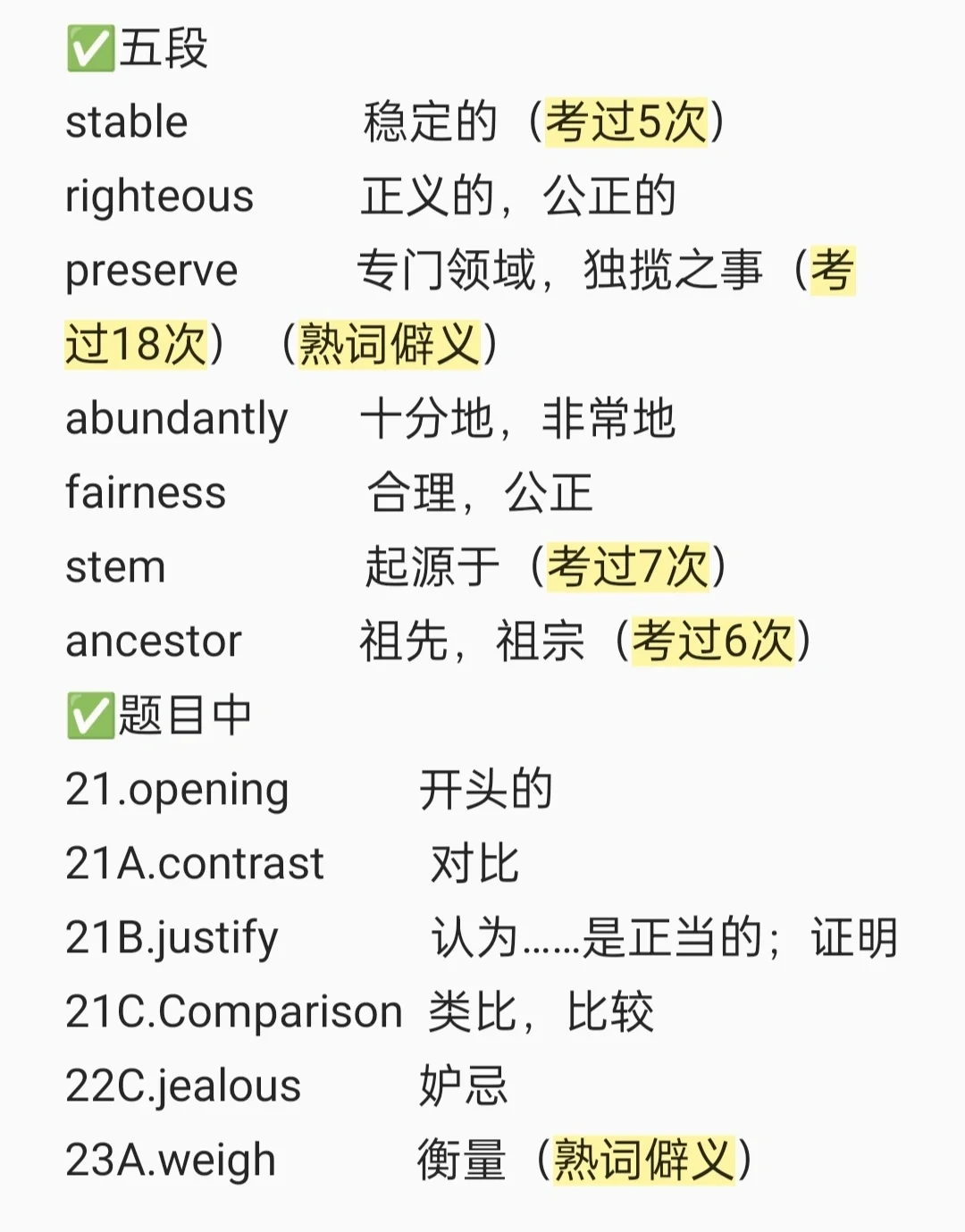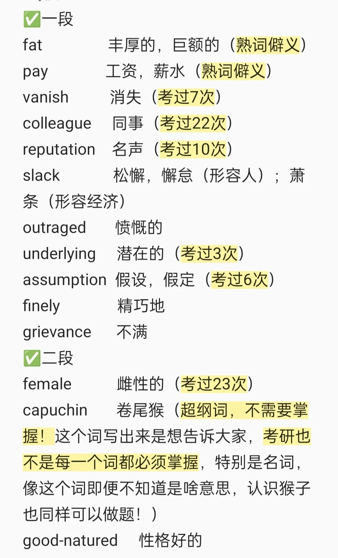 文中标注的是我认为必须要掌握的词汇!仍有很多简单同时也是核心词汇的并未标记。所以建议大家根据自己实际情况做笔记,你不认识的所有词汇都是核心词汇!!