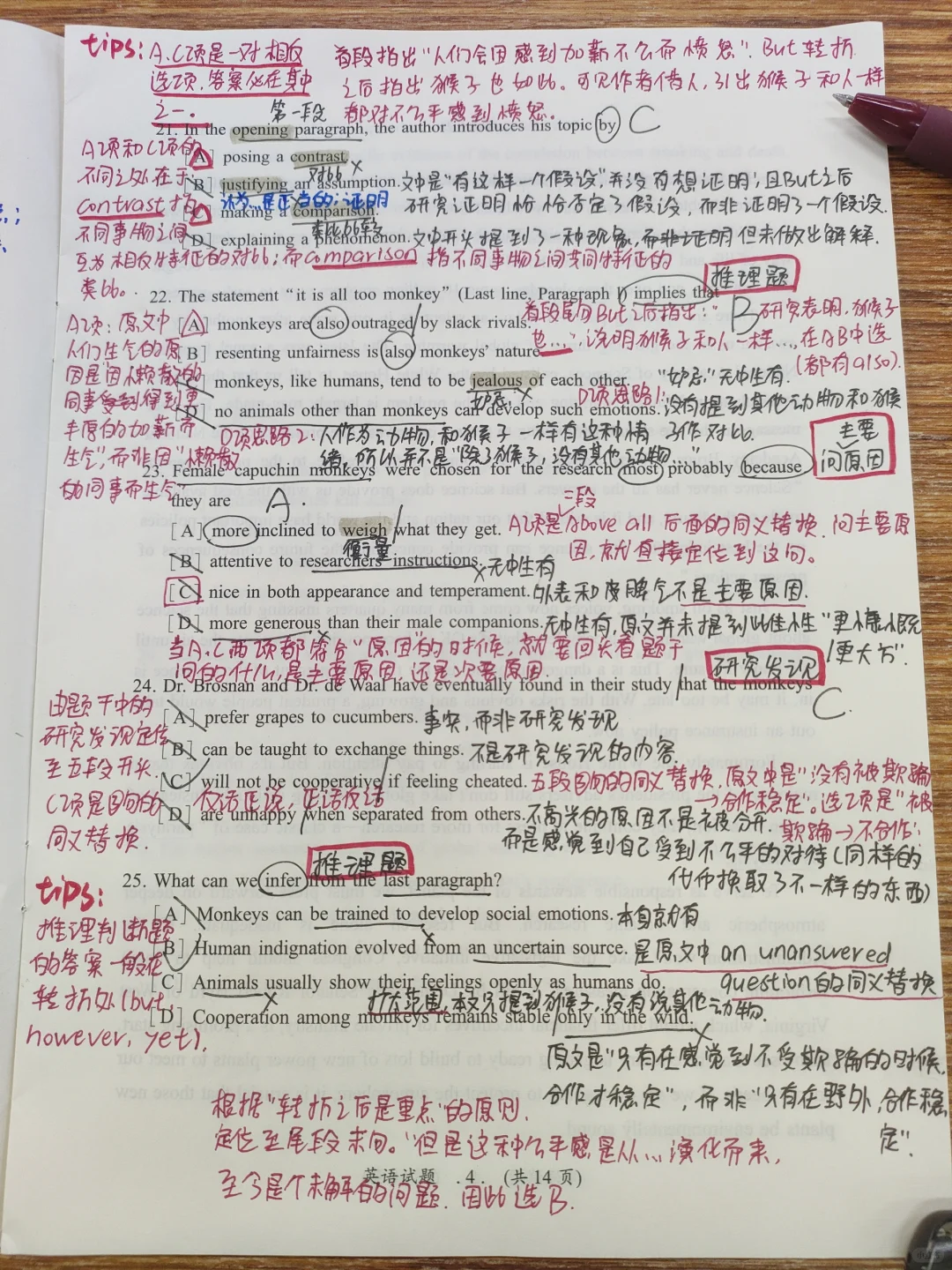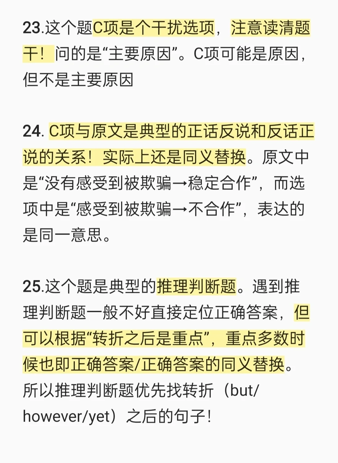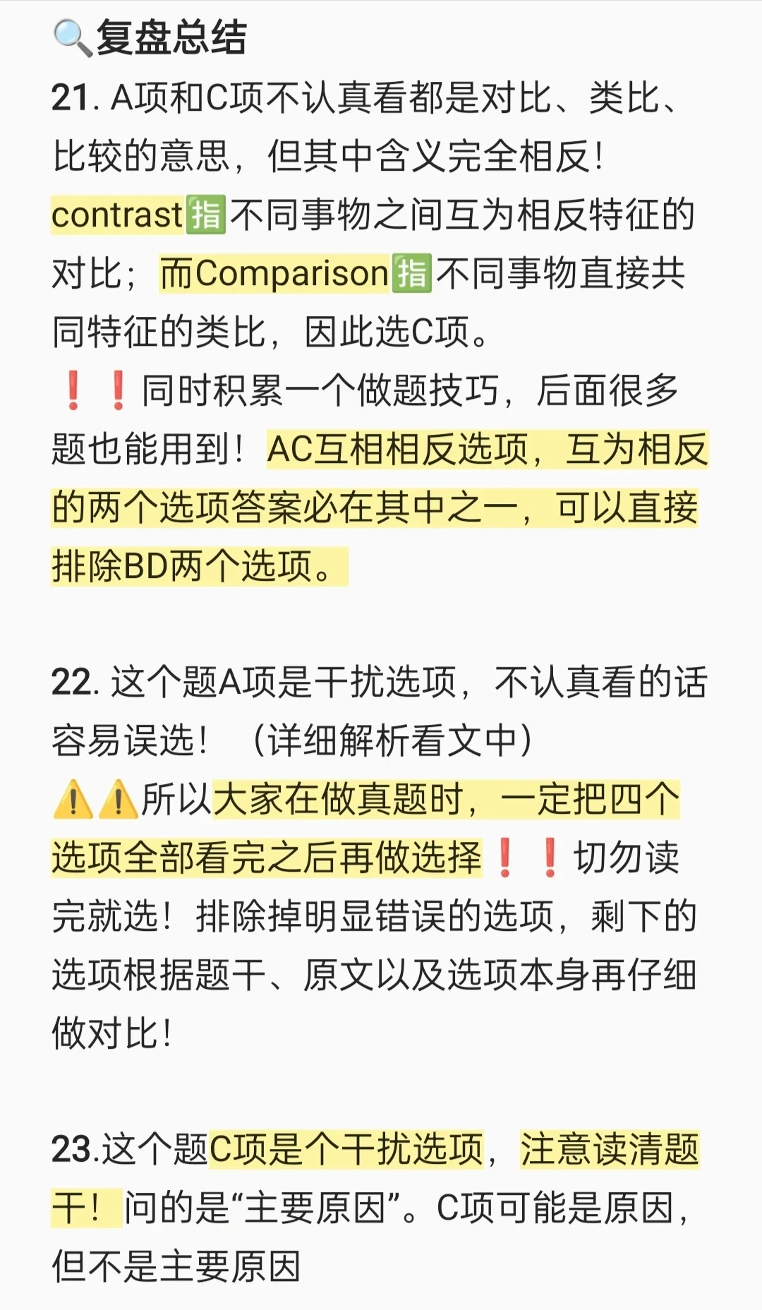 ⚠️⚠️所以大家在做真题时,一定把四个选项全部看完之后再做选择❗❗切勿读完就选!排除掉明显错误的选项,剩下的选项根据题干、原文以及选项本身再仔细做对比!