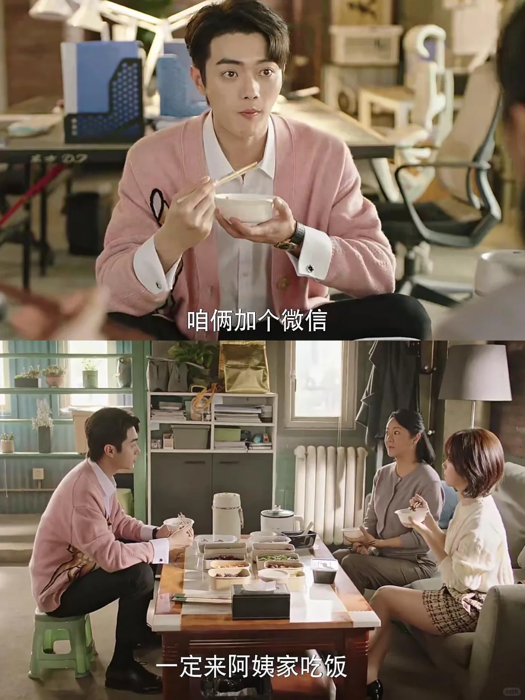 吃饭的时候超级温馨,纪星妈一个劲儿给韩廷夹菜,知道了他父母的事,还要加微信,说以后想吃什么就给他做。