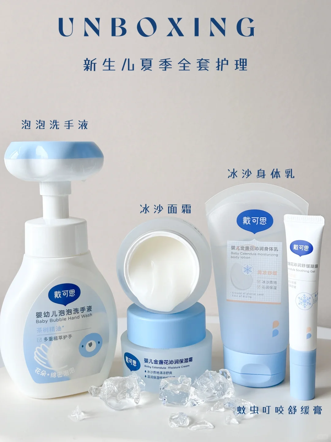 时间过长后,皮肤泛红干燥,这时候给它涂抹上冰沙面霜,一抹化水,瞬间给宝宝肌肤降温🌡️