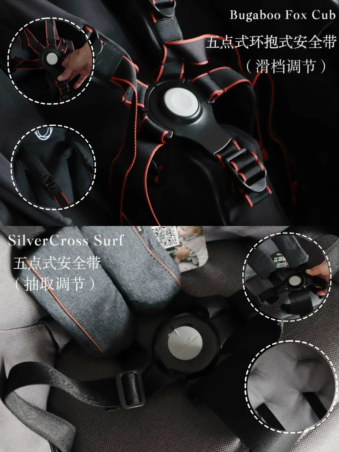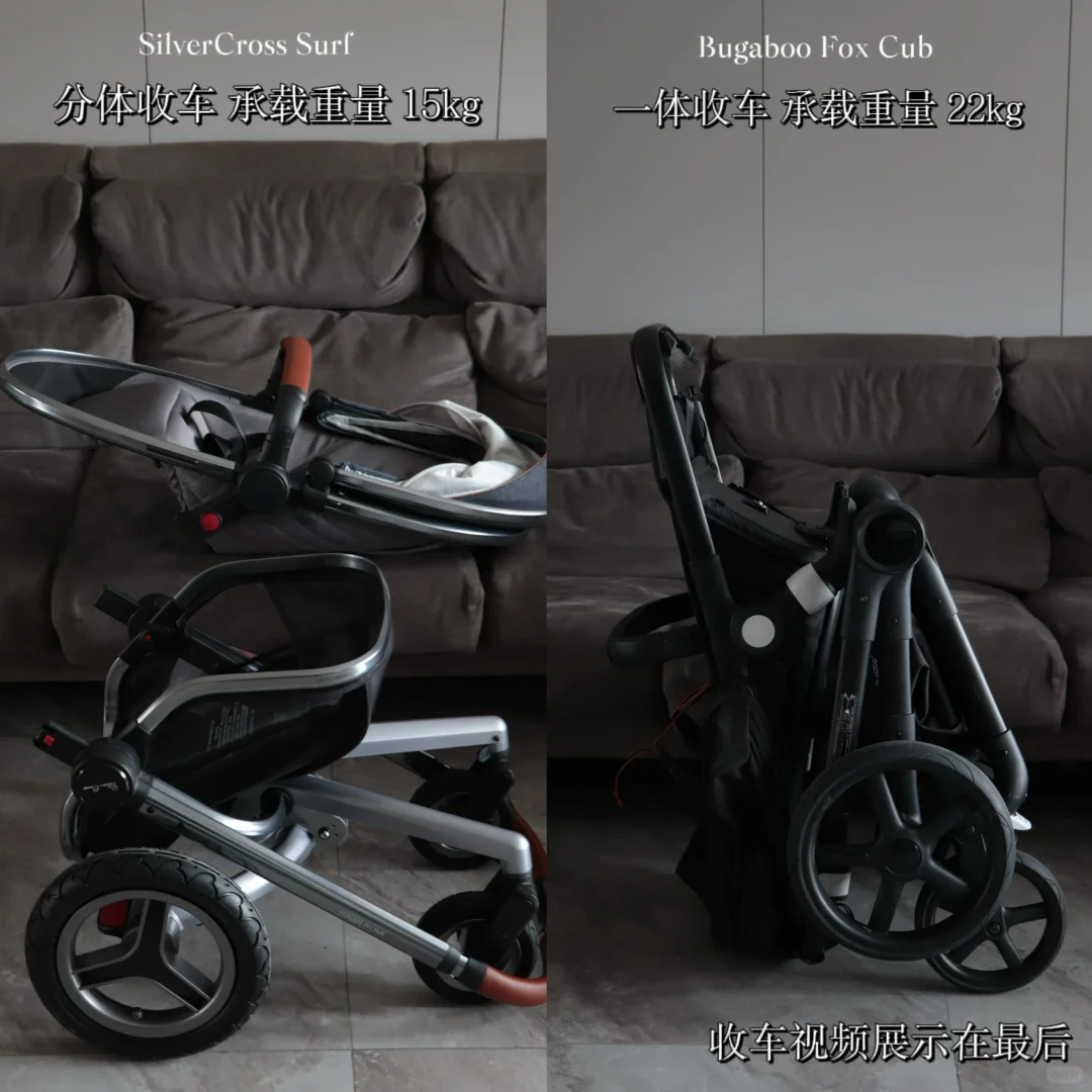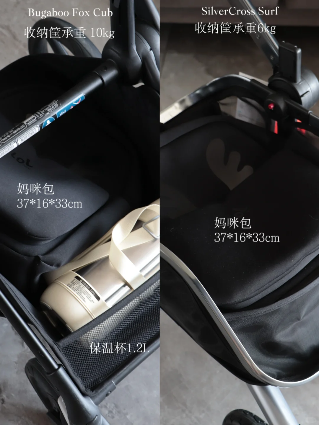 ✔️Fox Cub 储物篮更大可以放下妈咪包和水壶,重量更轻便一些对经常出行的家庭比较友好