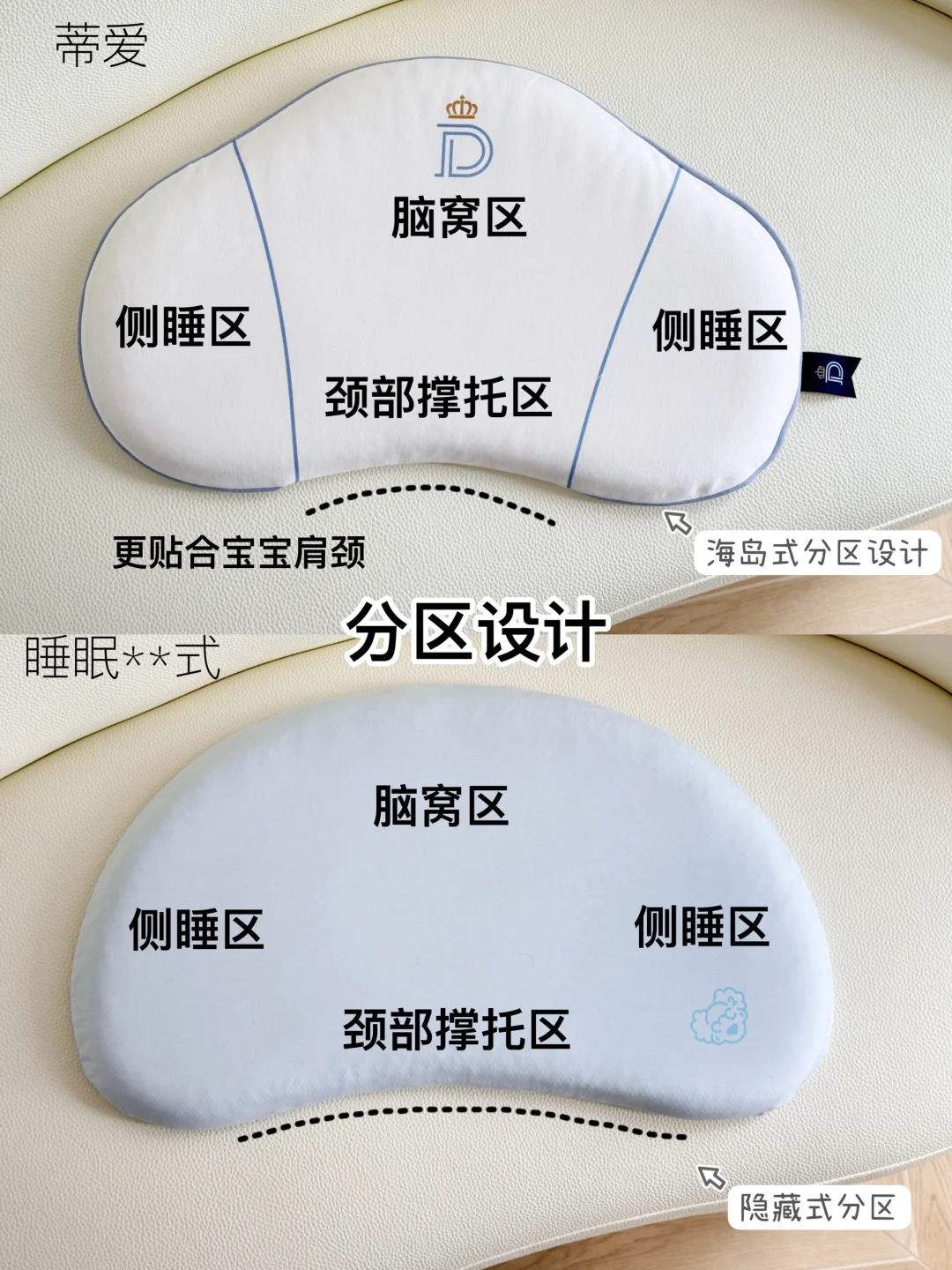 宝宝睡觉喜欢翻来覆去,要选分区设计的枕头,不容易跑枕,而且每个区域都有对应的支撑,防止睡觉呼吸不畅