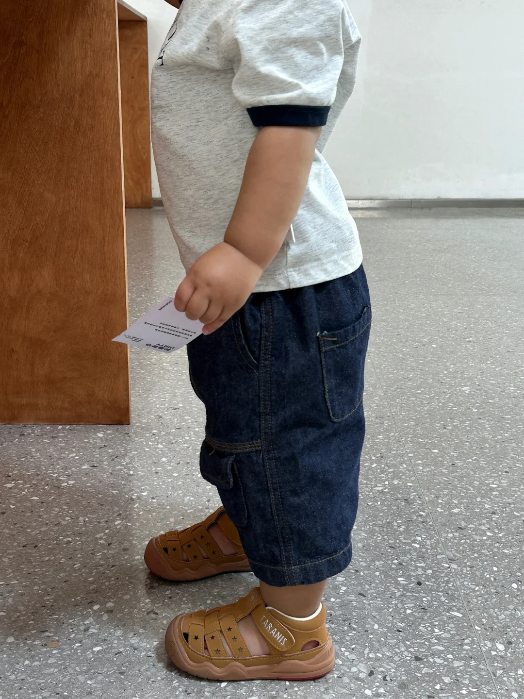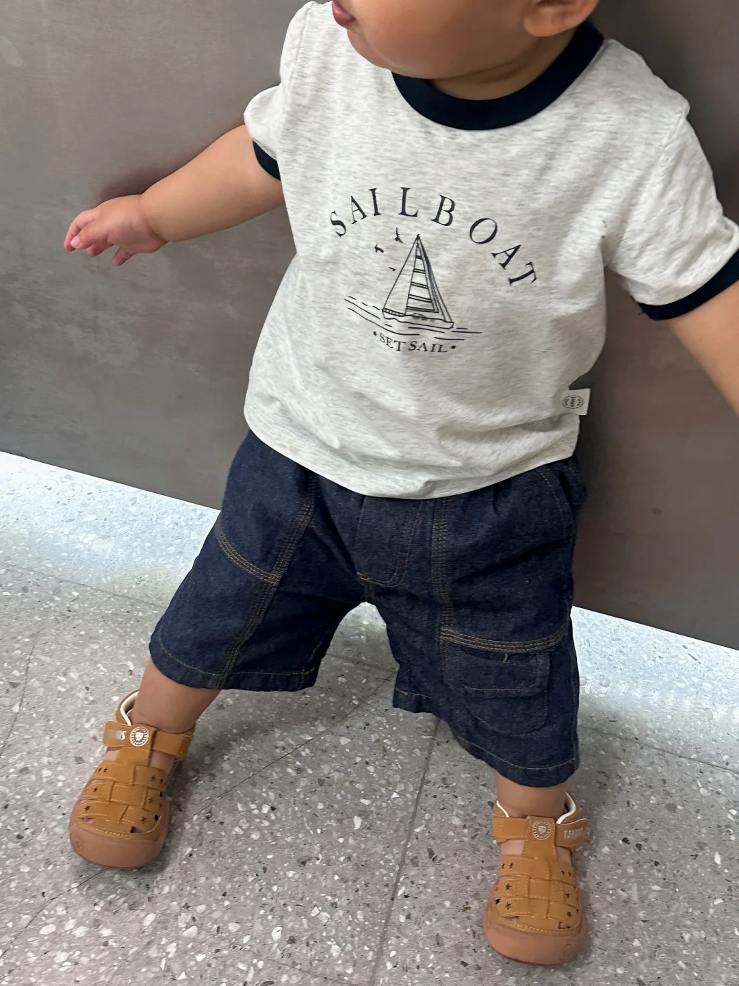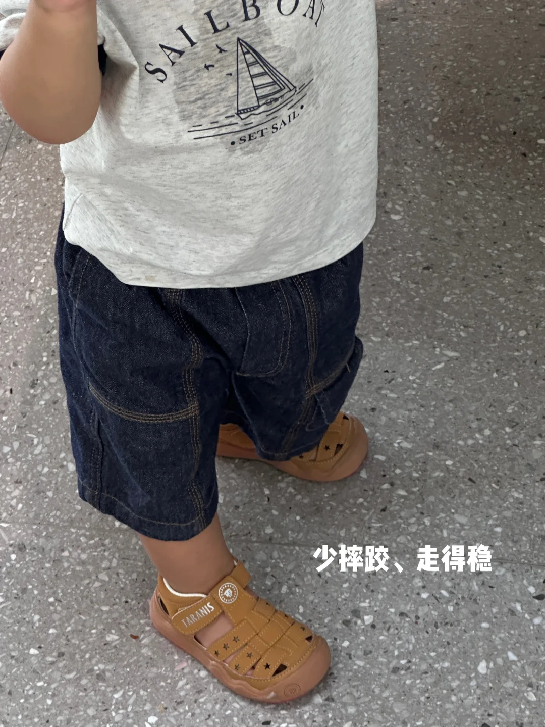 现在多宝穿着这双夏款凉鞋走路🚶🏻♂️