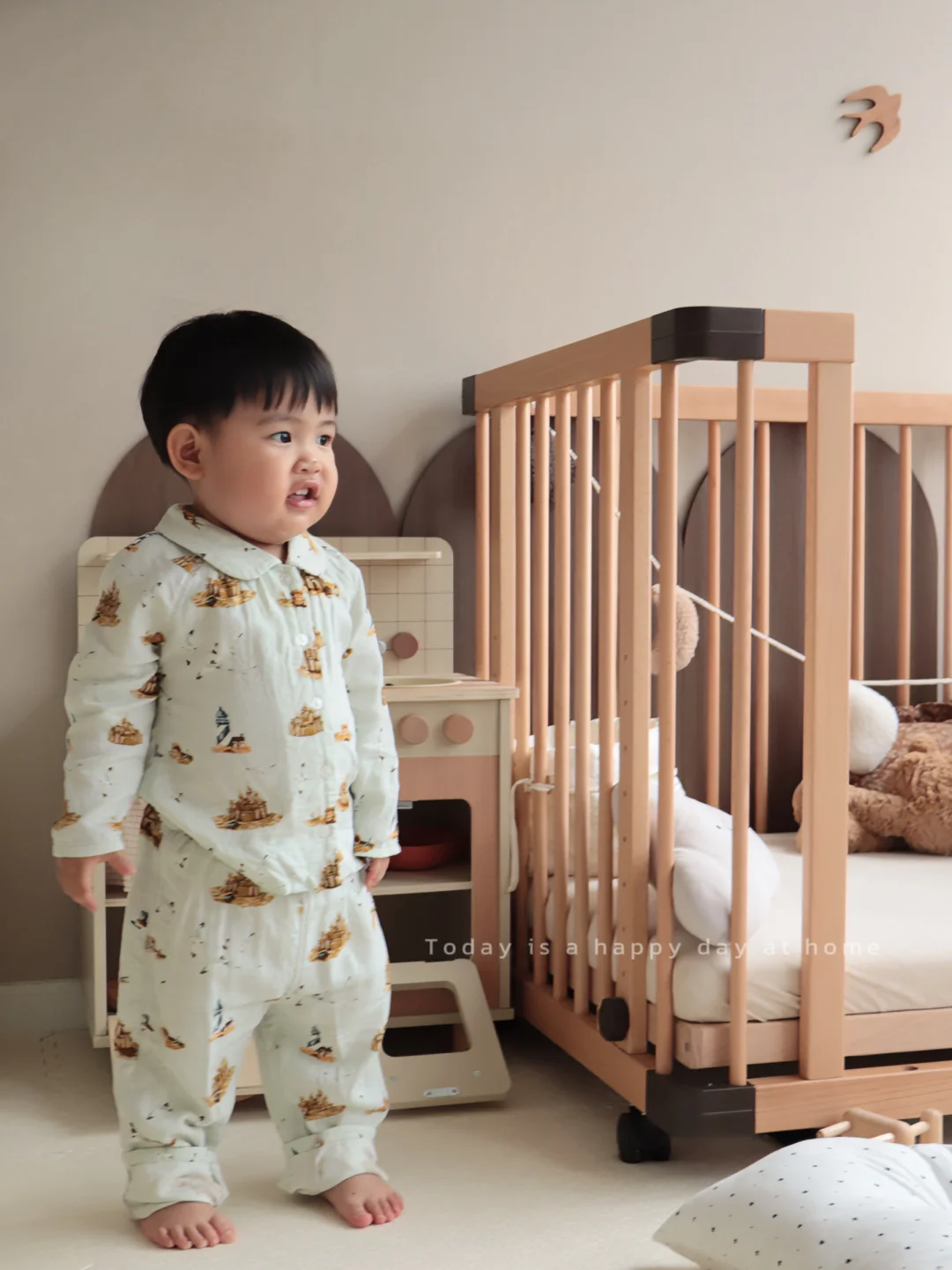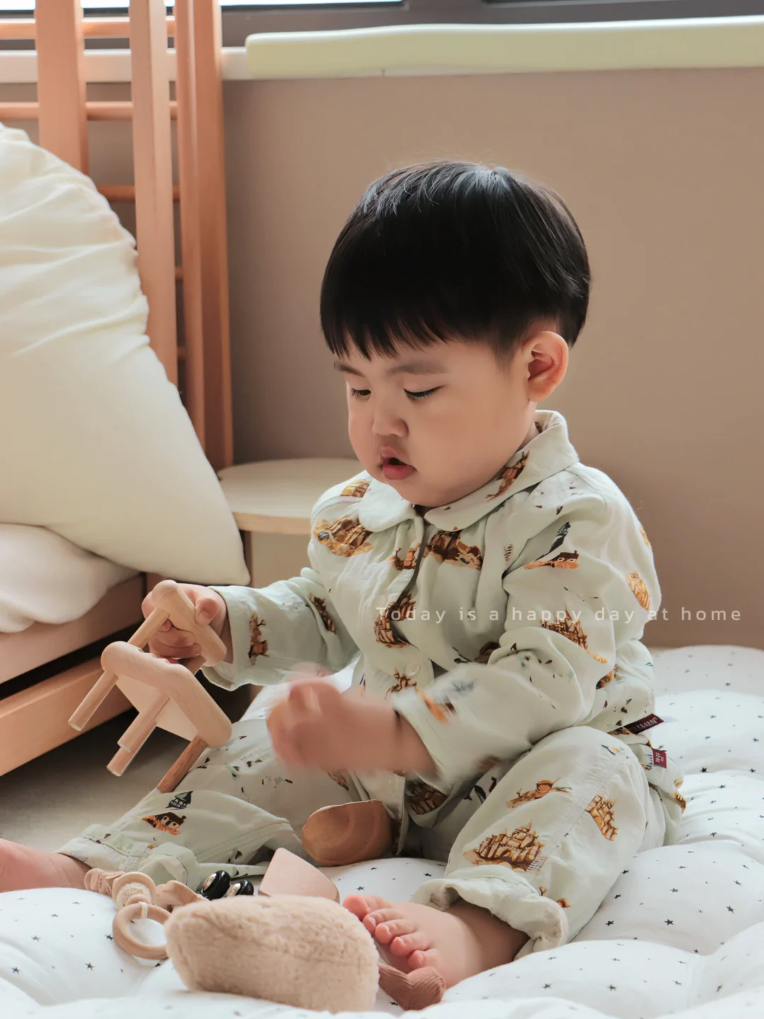 最近的天气总是阴晴不定 影响宝宝出门玩儿了 只能在家当个小宅男了 新买的 mini居家服真好看~