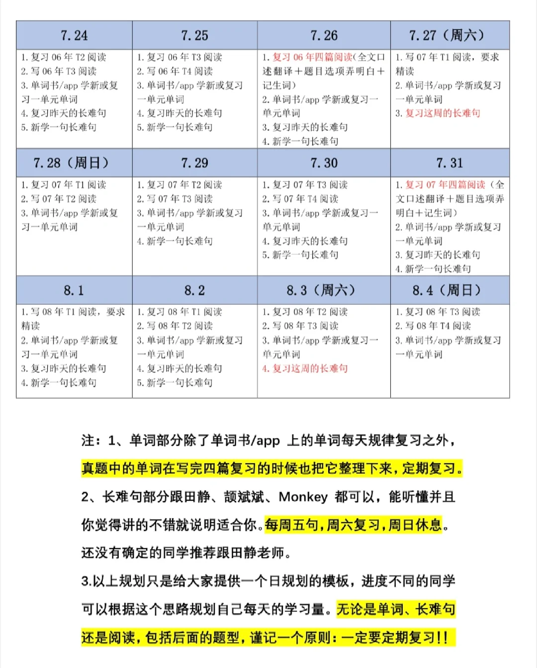 今天给大家详细展示我当时考研自用的一个时间规划表,当前阶段的任务就是单词➕长难句➕阅读,根据你自己的进度写完接下来一个月的规划,之后按部就班地去做,哪有时间焦虑!!
