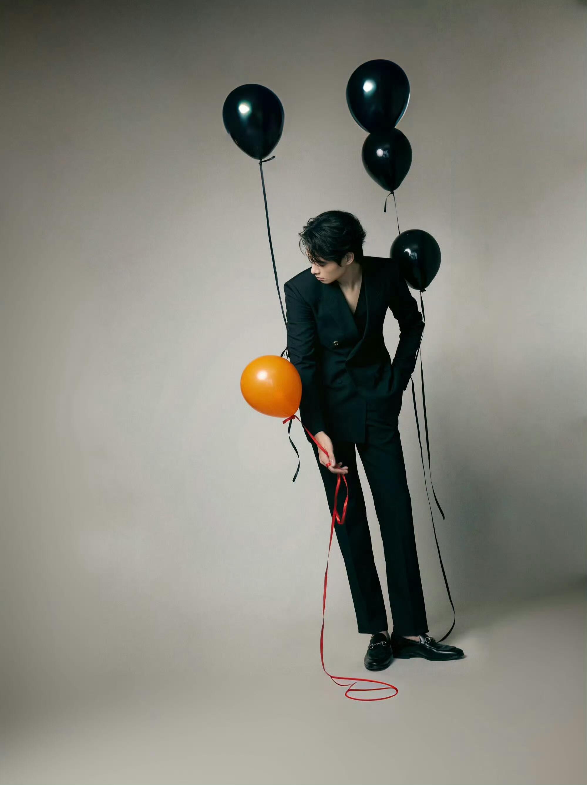 魏大勋,黑色西服套装,搭配经典乐福鞋,简约都市型男格调。