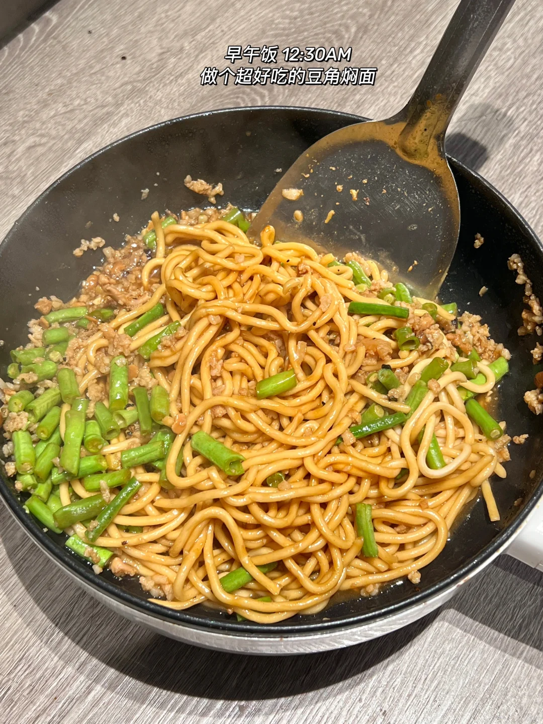 🥣早午饭:豆角焖面 葡萄冰萃美式