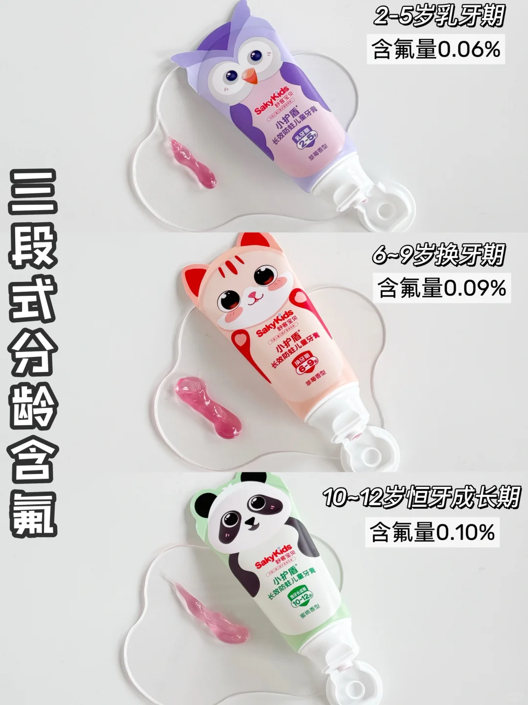 2~5岁乳牙期,选紫色猫头鹰款,含氟量0.06%