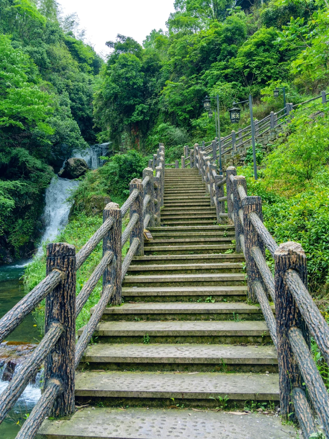 游客中心购票,继续开车前往景区门口停车,沿着溪流游步道上山1.5h/下山30min