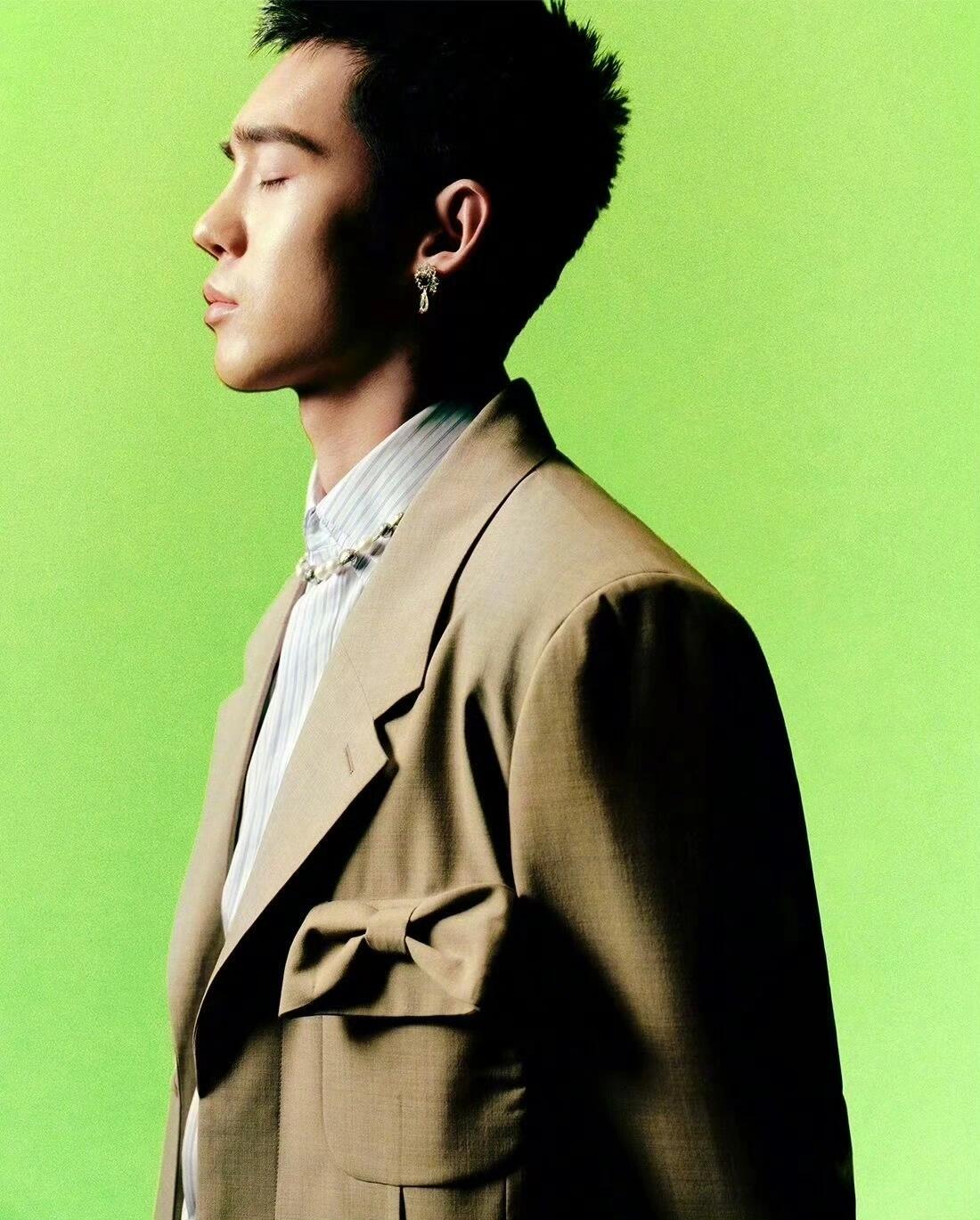 绒花点睛啊,这西装瞬间有了东方神韵!太适合新浪潮了,于适好眼光