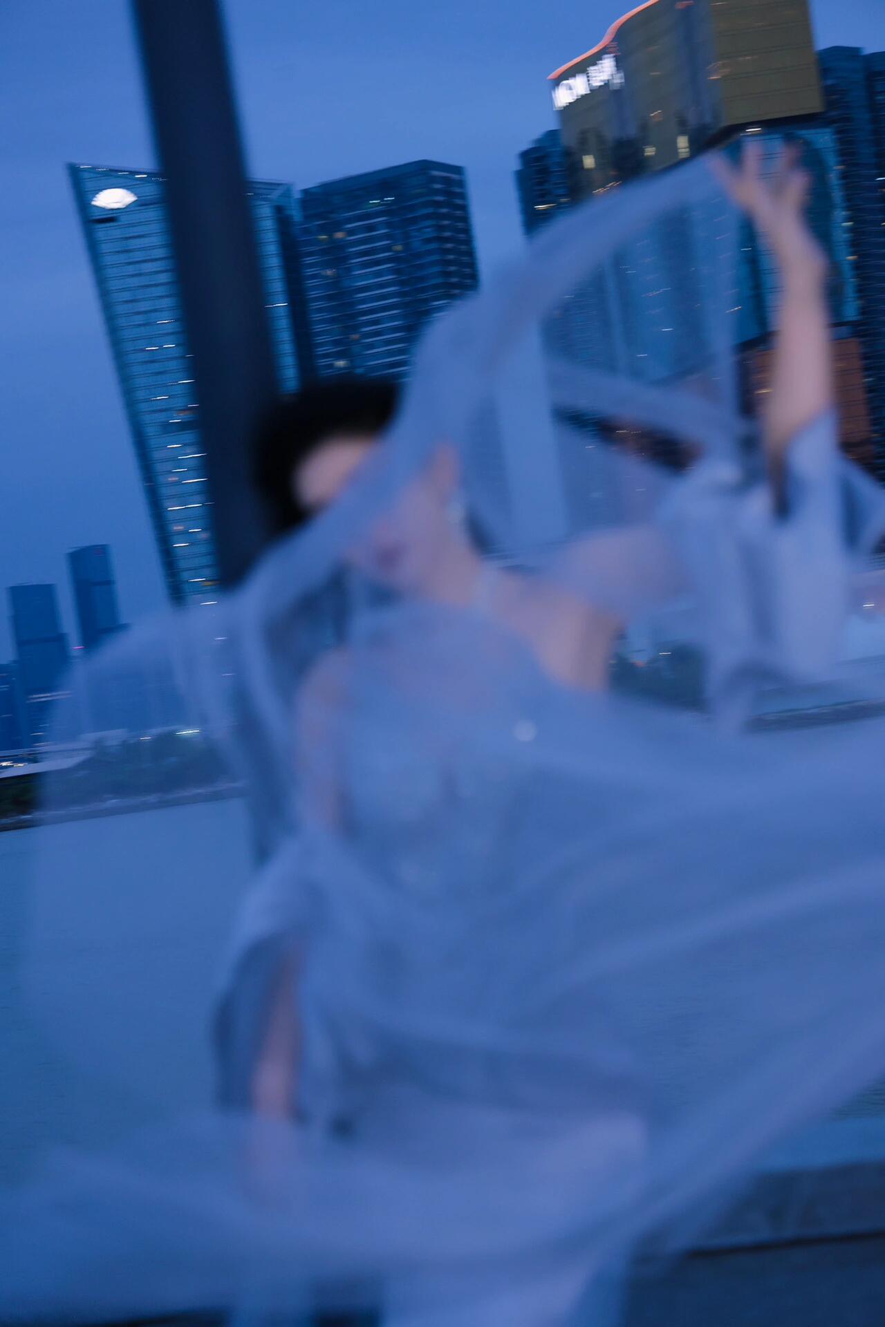吉娜弹琴秀才华蓝色流沙裙展仙女气质