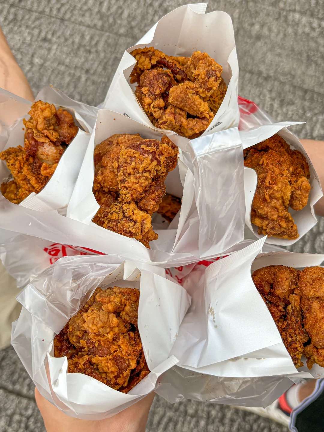 能拒绝大大的炸鸡腿啊我就问😭😭 关键💰9r不吃真的是糊涂了 炸得焦黄脆嫩的一口咬下去咔嚓咔嚓的而且超大一个!比手掌还要大… 吃完一个就有点饱饱的了🤤