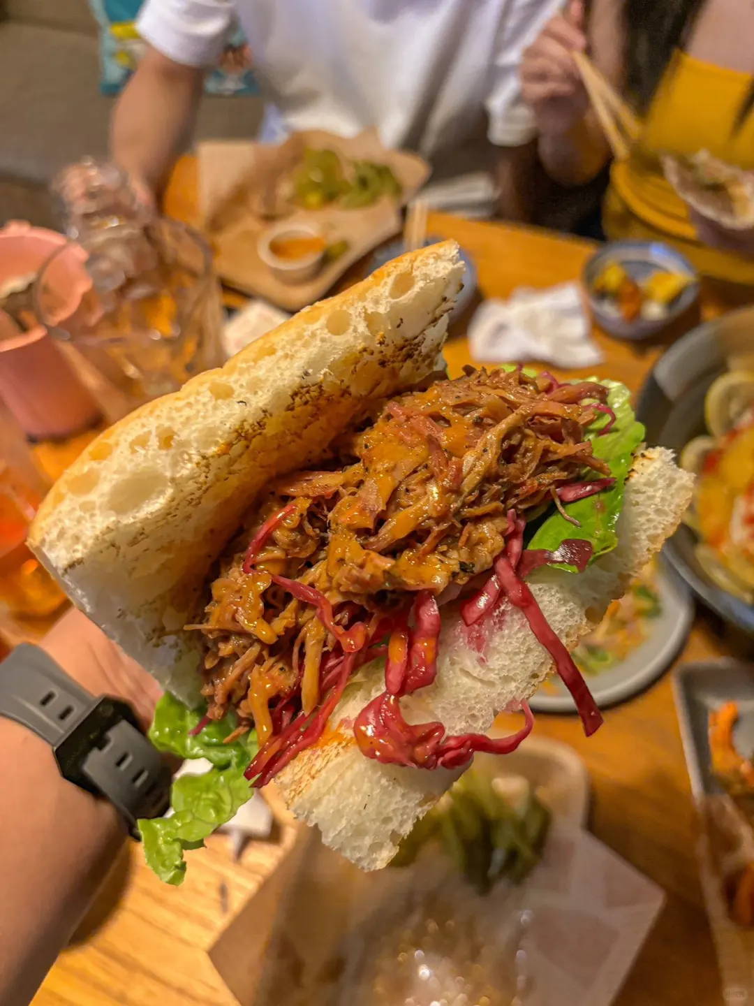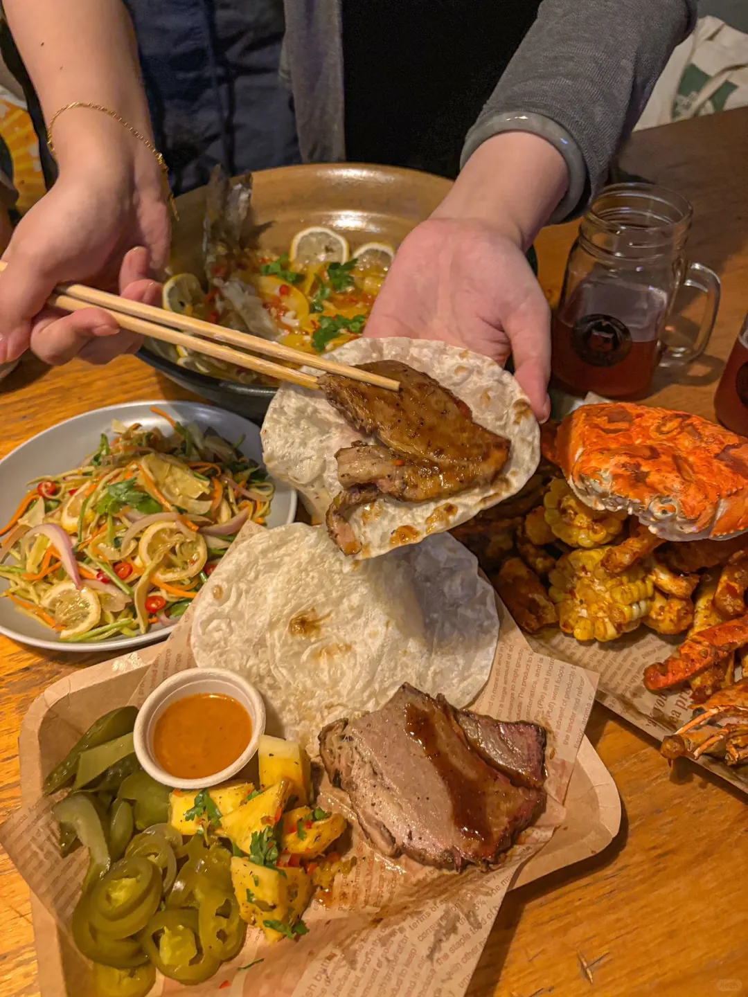 真的,看到带饼🫓的食物我都超级爱,饼皮包上牛肉➕菠萝🍍➕腌过的黄瓜🥒一口下去真的不要太满足