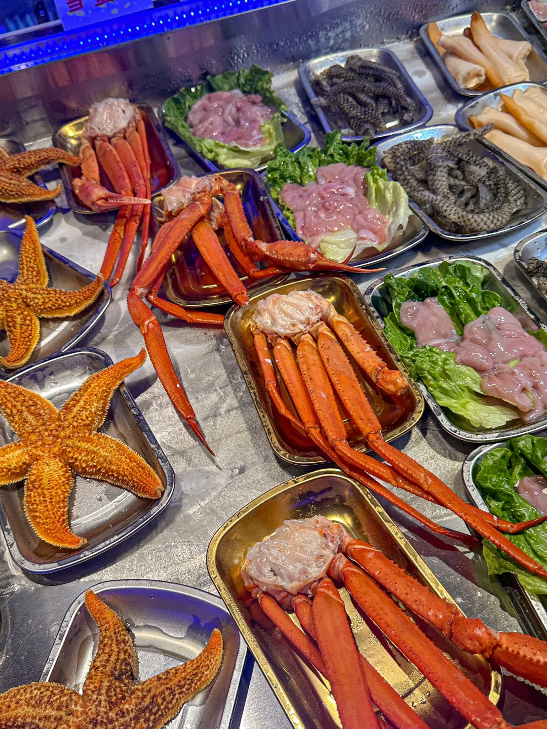 🦀不仅超级新鲜而且全部明码标价!明档海鲜自由挑选,看上什么自己拿!📅 新国风环境像逛宋代渔市