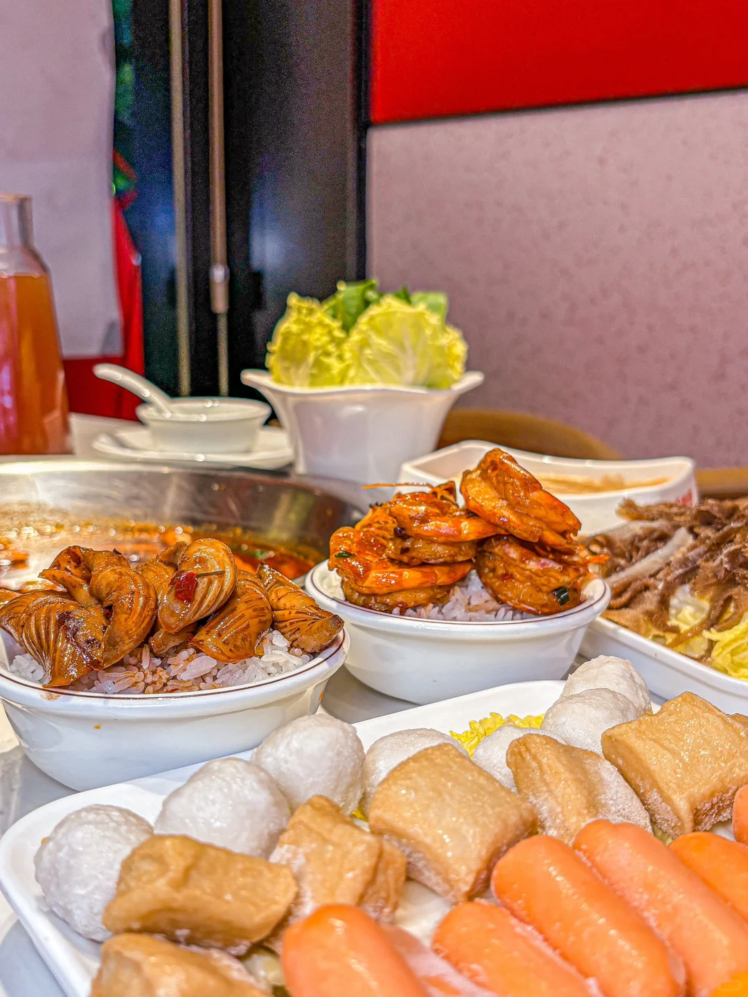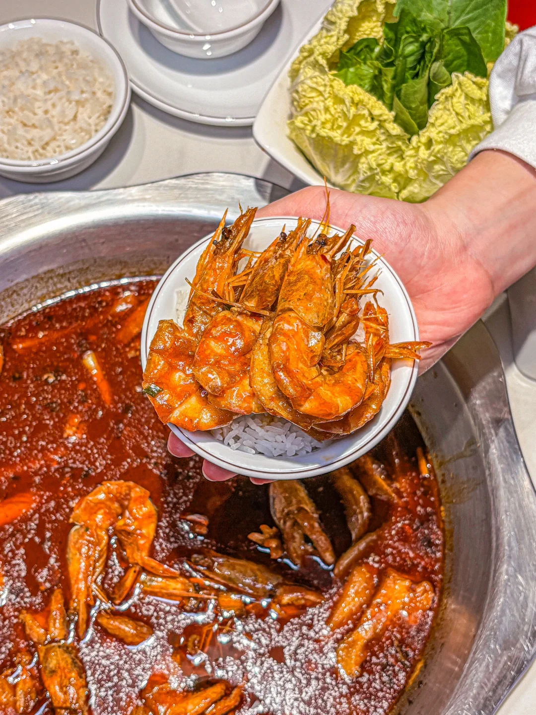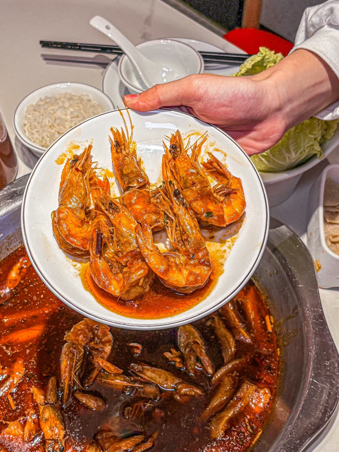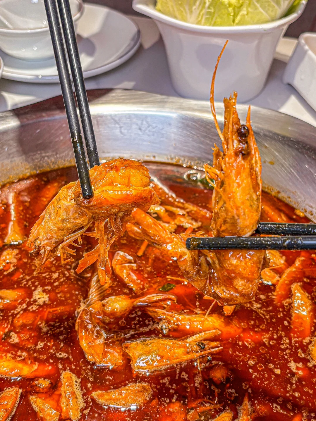 虾🦐个个都开了背 虾线都挑掉了 处理的很干净 吃完还可以涮火锅🍻