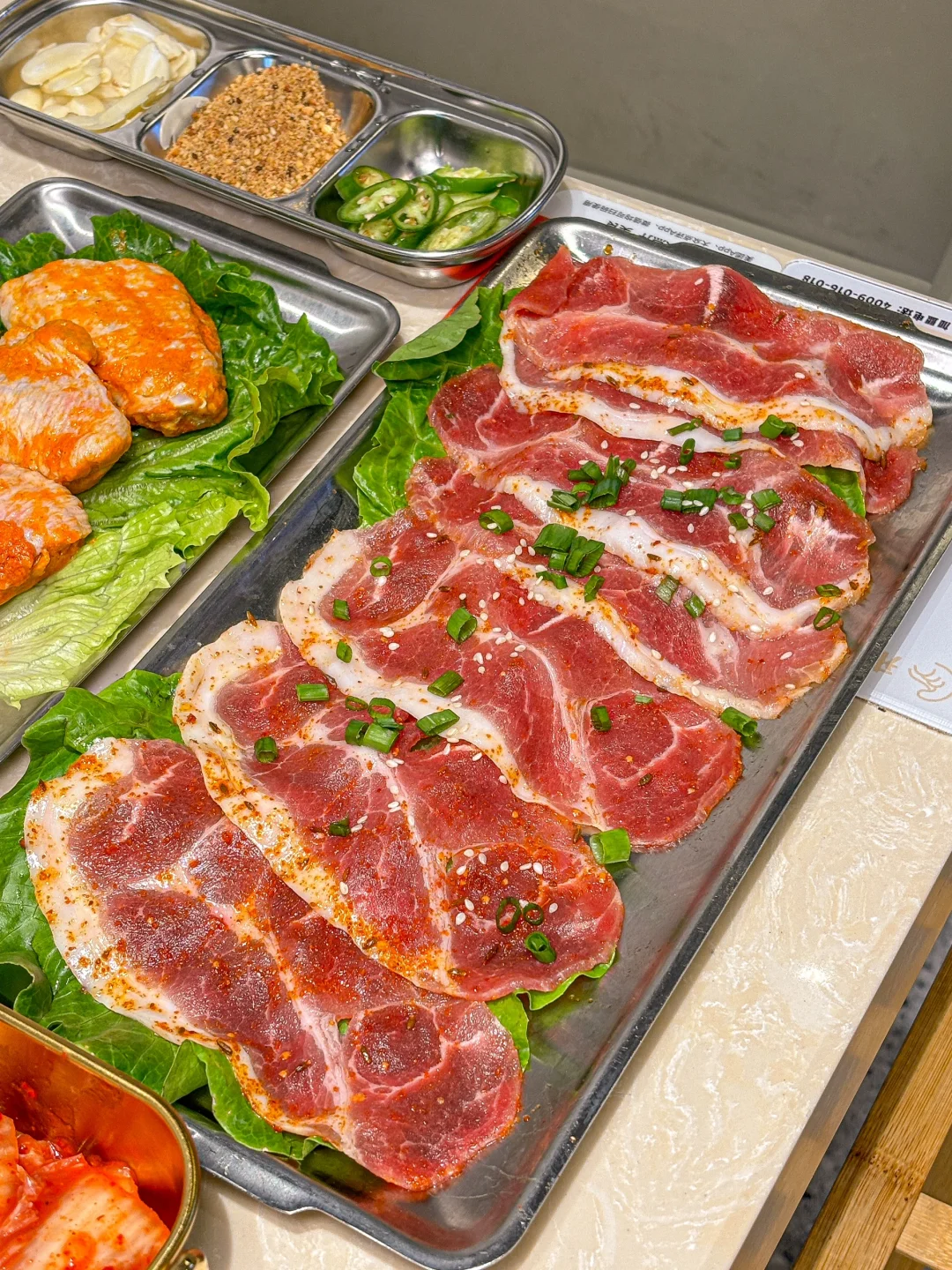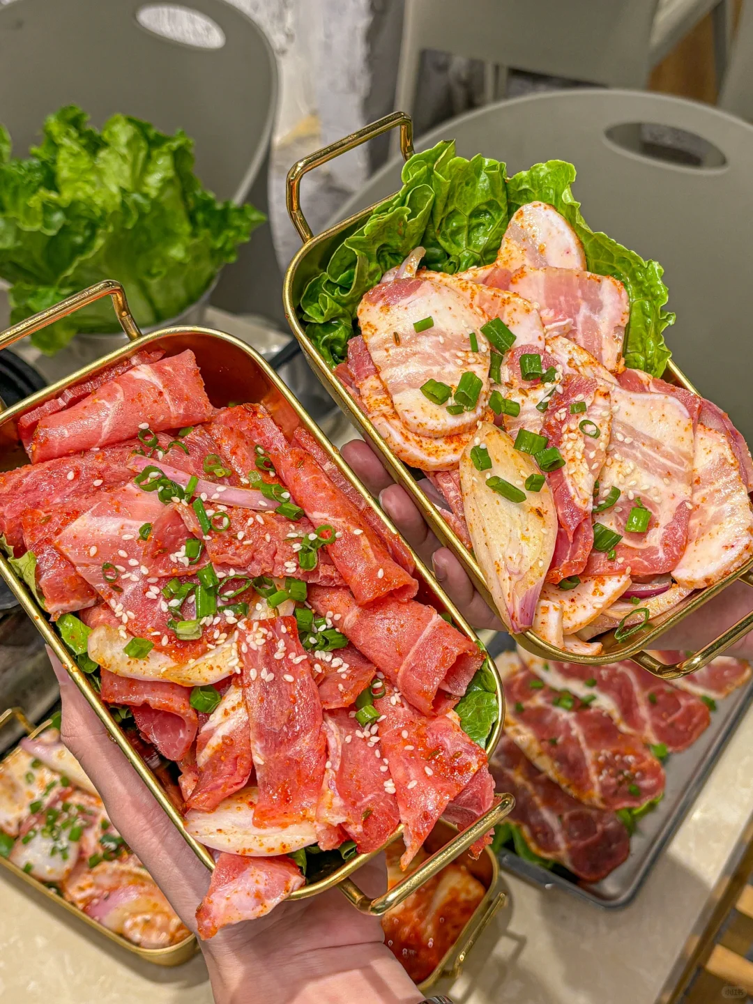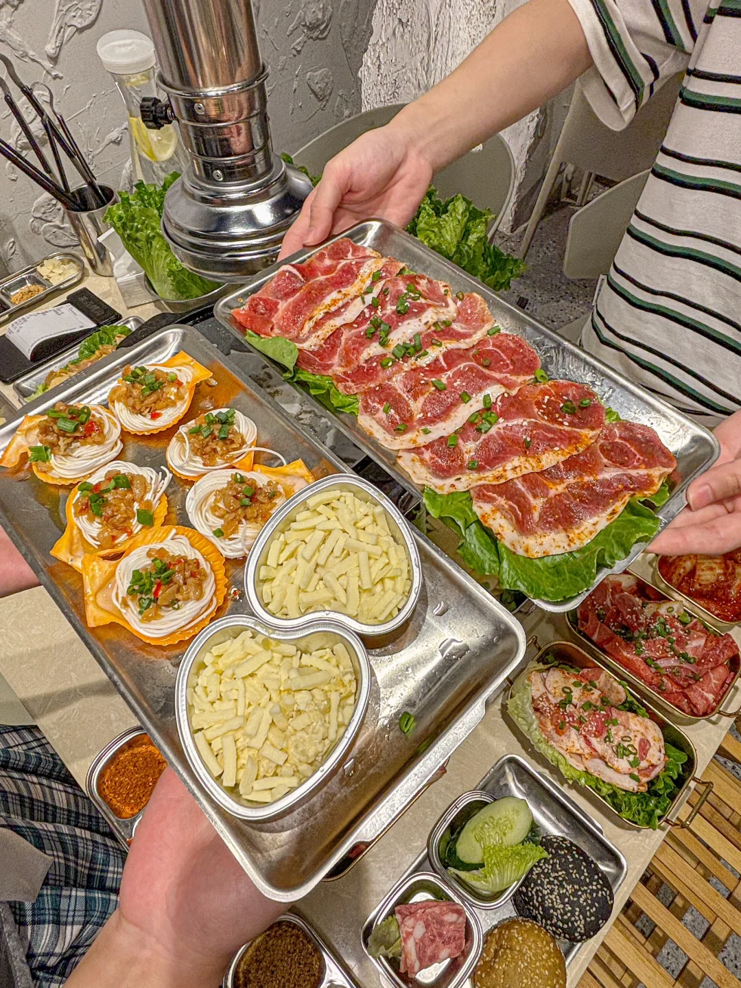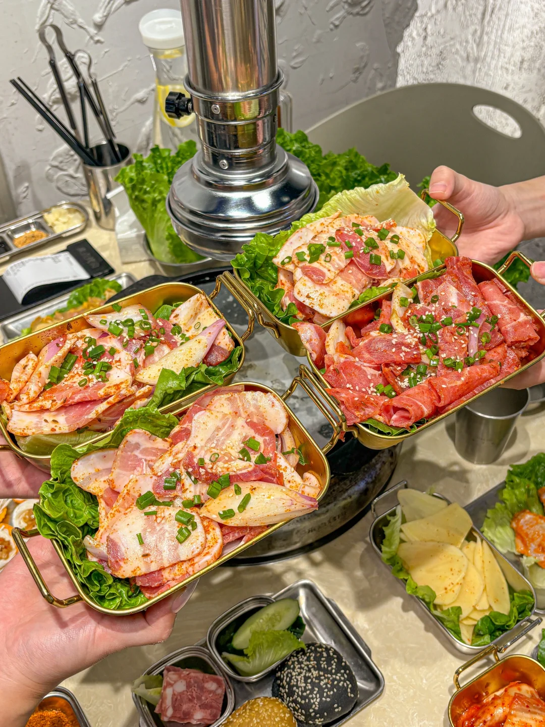 😋在万达金街踱步,远远就被来点烤肉的香味吸引到,店内装修主打简约的ins风,很符合现在年轻人的审美 👨🏿‍🌾人均就60左右就可以在这家店满足味蕾需求!纯碳烤除外,各位小料菜品也是特别齐全在线,真的很适合学生党打工人! 🍖招牌五花肉 在烤盘上烤得滋滋冒油,烤半焦嫩的五花肉配上生菜一口下去真的超级满足,真的和平时吃到味道不一样! 🍔汉堡DIY 可以按照自己喜好添加,个人推荐黄瓜🥒➕培根肉🥓➕芝士🧈 🥩招牌牛肉 鲜嫩多汁的牛肉在烤盘上发出得香味真的超级诱人,个人觉得烤到6分熟口感最佳,配上秘制酱料,入口真的超级滑嫩又有嚼劲 🏠:来点烤肉(漳州碧湖万达广场店) 📍:龙文区建元东路2号漳州碧湖万达广场