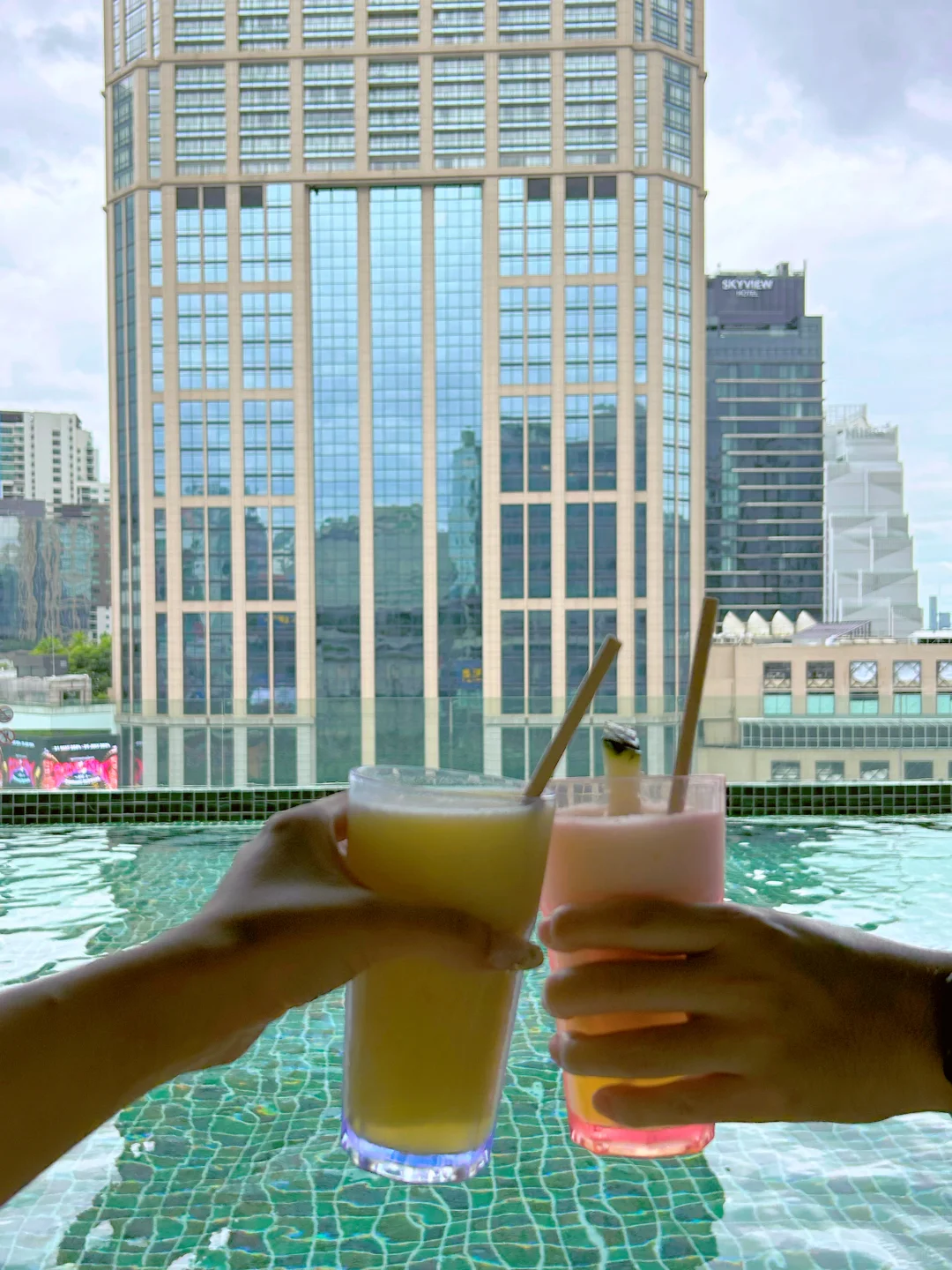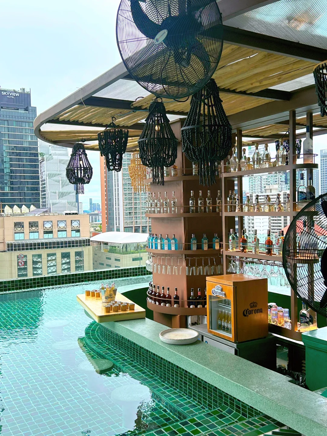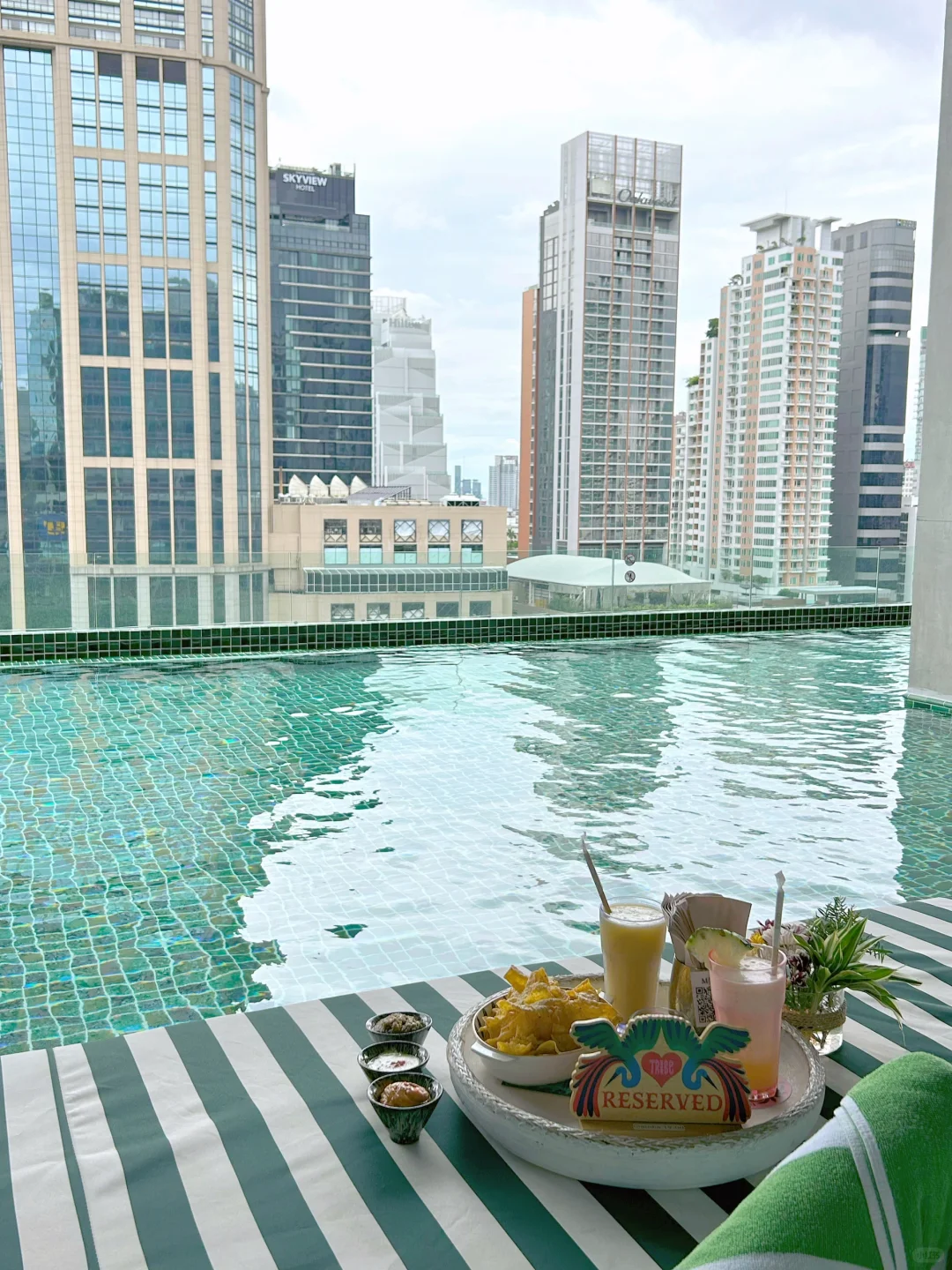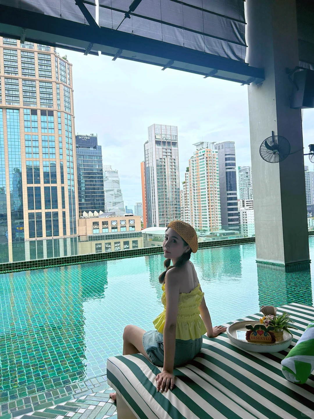 ▪️在泰国曼谷网红商场Emsphere的5F。 真的太Chill了。 - ▪️很幸运这几天曼谷超级凉快。 我中午12:30到的, 不用排队,不用低消,靠近泳池的位置没有一个人, 看来想要美美拍照的还是要早点来。 晚上这里就变成派对氛围了。 饮料价格很美丽,一杯果汁150🐷,也就是30RMB。 - ▪️提供试衣间和冲凉。 可以带着游泳衣来游泳。 -