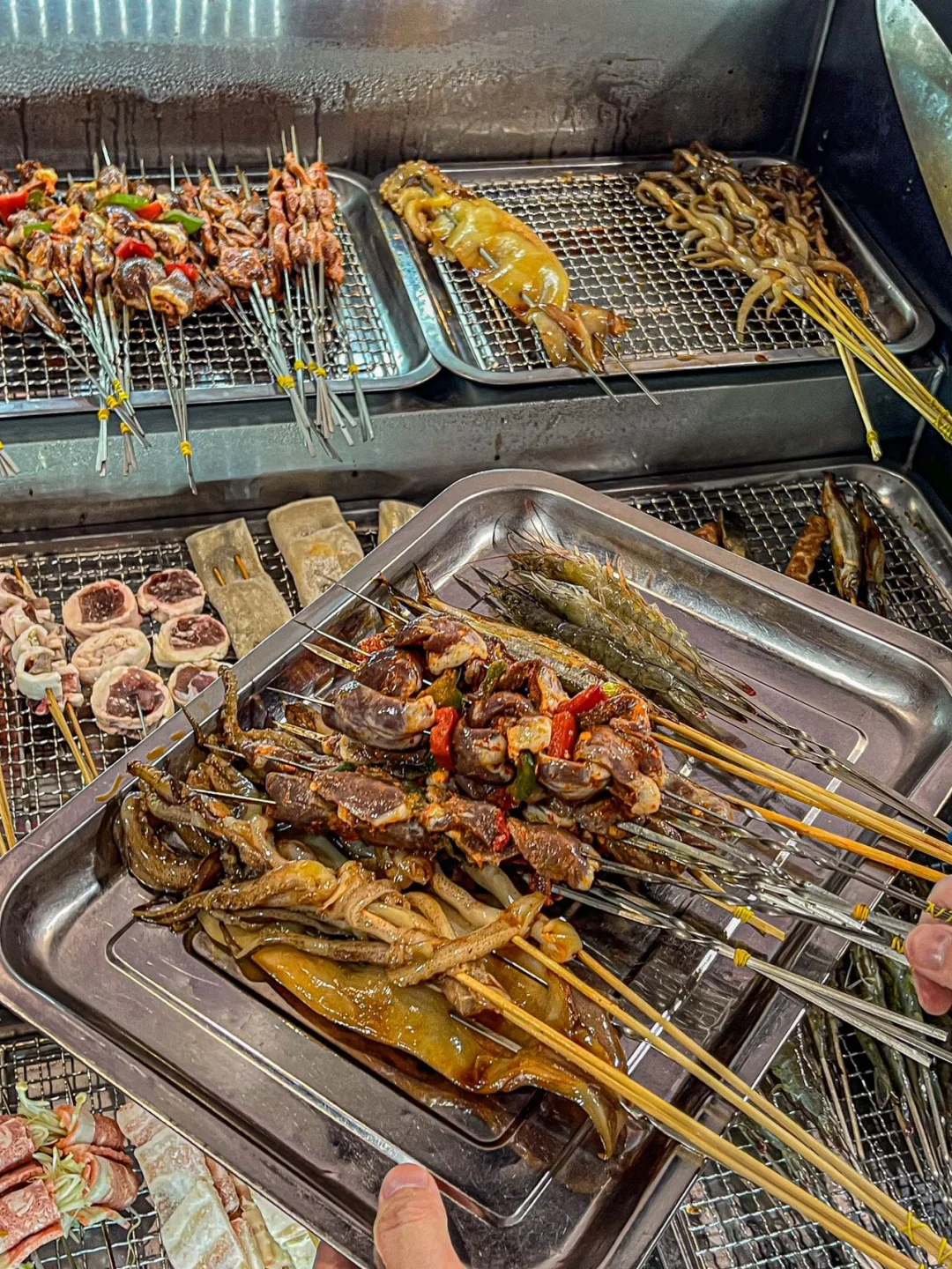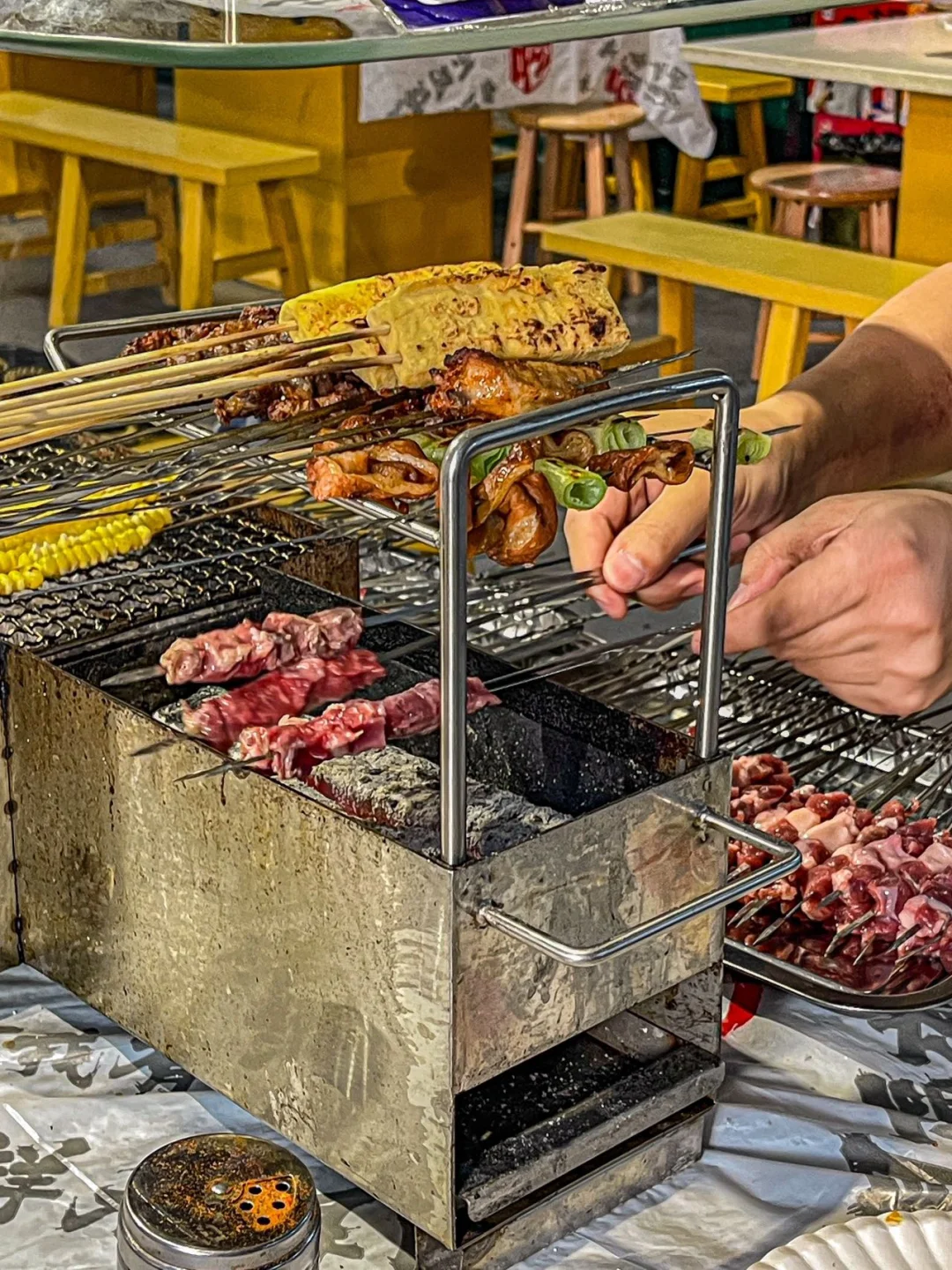 围着火炉吃着串~这氛围感拿捏住了👀 撸串和逛超市一样👍全部都是自己选自己烤 食材全是当着你面现串的✨ 全都是看得见的新鲜! 关键还都是明码标价💸不怕被坑! 烤串荤、素、海鲜等等…等等!!你想不到的品类,他们家也全都有❗️ ✔️熟牛肉筋小串 ✔️照烧鸡肉小串 ✔️蒜香猪五花 ✔️新鲜活虾 ✔️郡肝小串 ✔️蜂蜜面包片 ✔️网红蜂蜜片 而且还是纯碳烤💥 夏天的晚上就很适合约上三五好友 喝着啤酒🍻撸着串✨