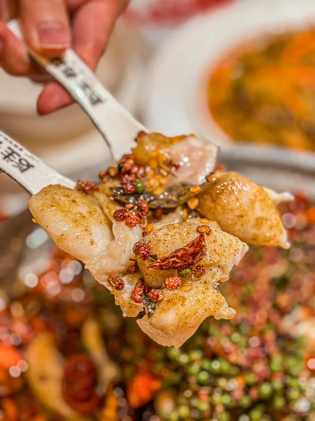 新鲜的活鱼现捞现做 高温淋油直接香迷糊了🤤看着辣椒多 但是吃起来不辣 没有鱼刺肉很鲜嫩 创意口味双双在线
