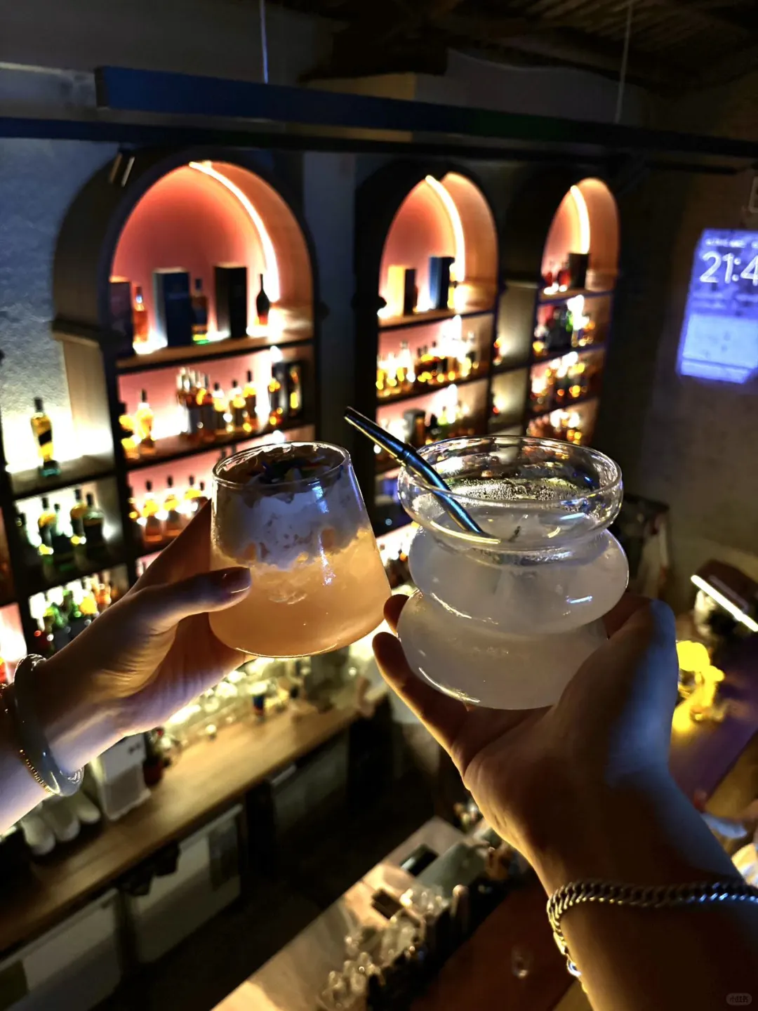 💫总感觉每次看着调酒师调酒的过程也是一种享受,🍹每一杯酒的调配仿佛看到了爱情中该有的样子,从初识到相恋到相爱🌟细品口感丰富,回味悠长,加上店里昏暗灯光映衬下,复古的装修风格,显得格外有氛围感✨