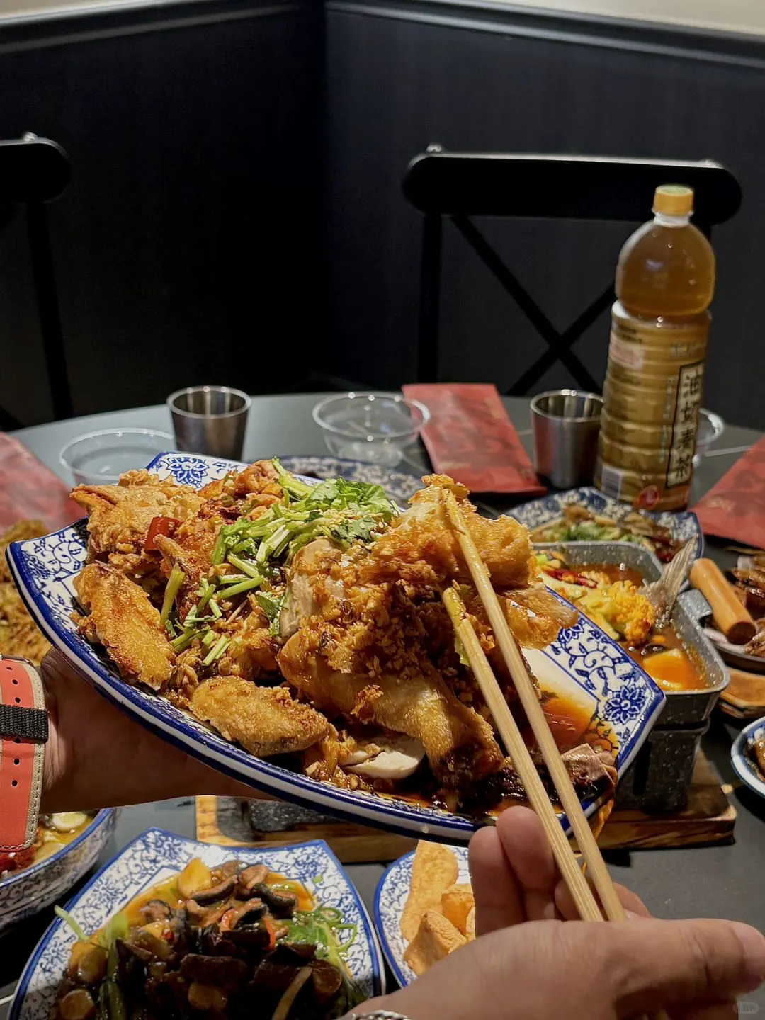 如果不喝酒人均消费也就40💰左右真的很适合打工人和学生党!招牌菜油酥鸡一定必点,好吃得嗦手指🤌炸豆腐蘸上酱料吃上一口超级酥脆😋招牌烤鱼鱼皮焦脆鱼肉更是鲜嫩多汁,下酒菜必备!