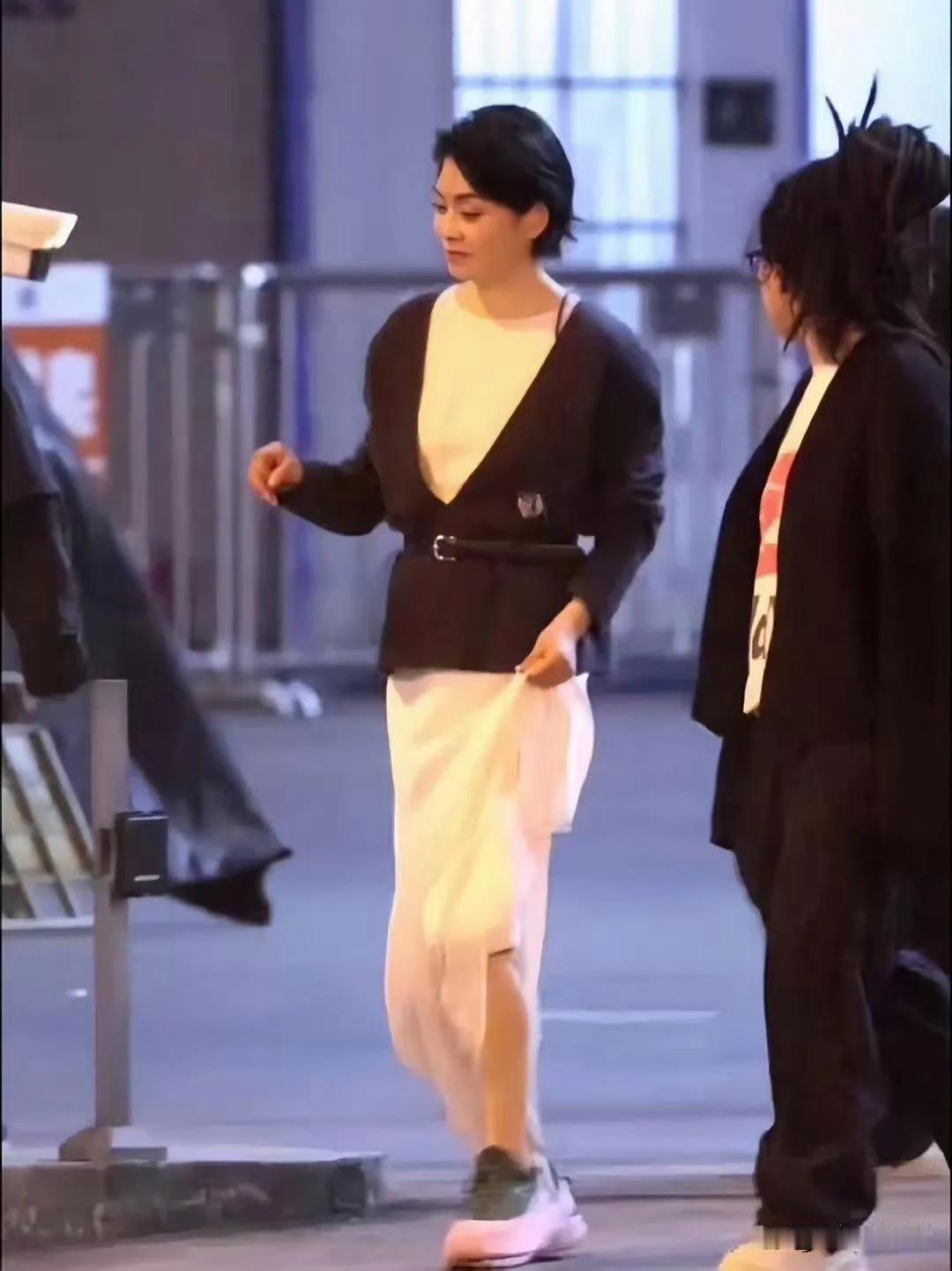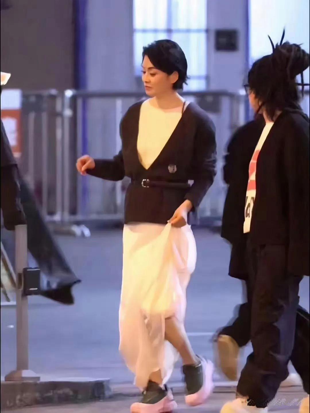 61岁毛阿敏打扮得越来越时髦!黑色的外套配上白色连衣裙,个性时尚,再加上脚下的运