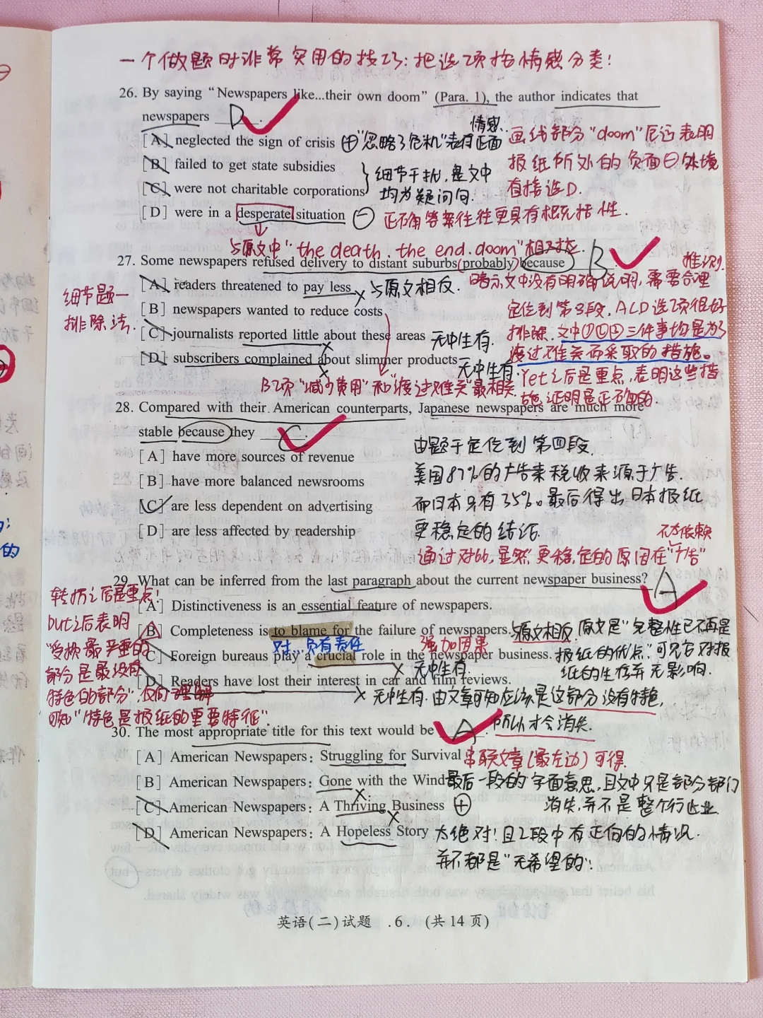 [二R][六R].无论是读文章还是读选项要养成边读边用➕➖标记情感基调的x惯!基调不对,直接排除,真的很节省做题时间!