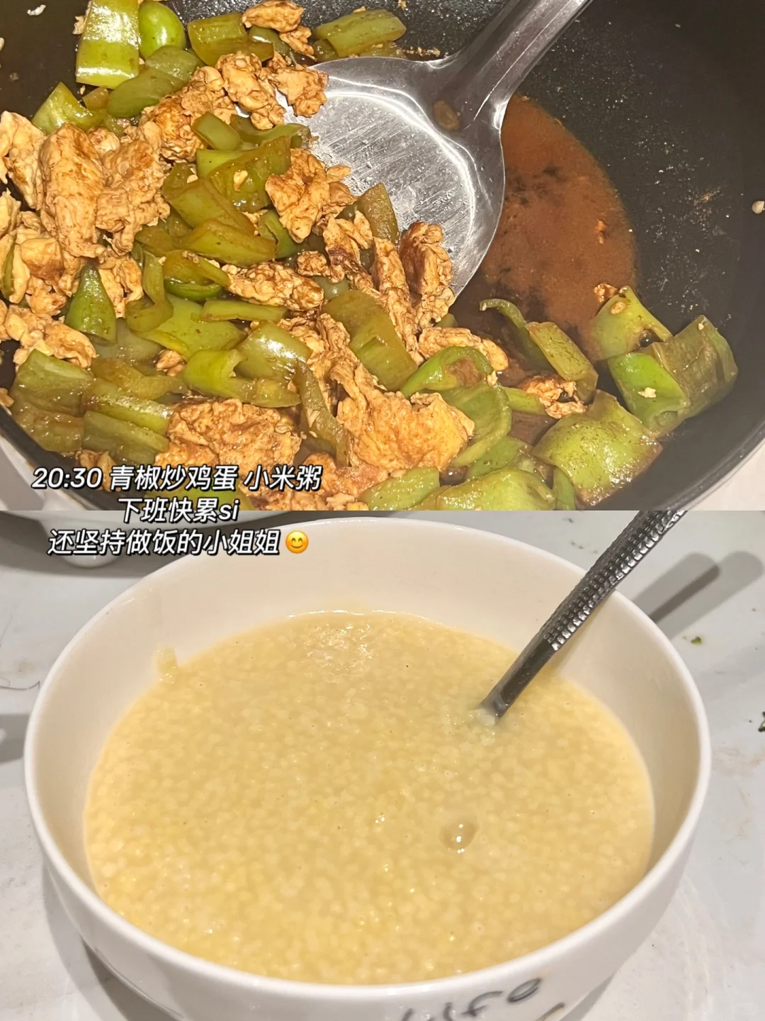 🥣晚饭:青椒炒鸡蛋 小米粥