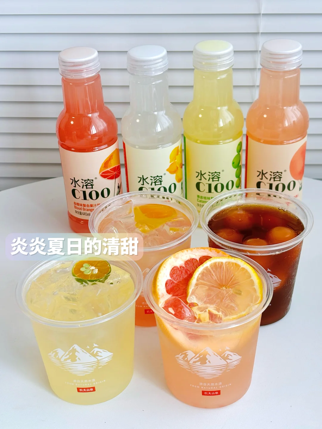 水溶C100简直是夏日救星,加点小创意,一杯变三杯,口感翻倍不单调!谁还买外面的饮品啊?哎呀,钱包得感谢我了~