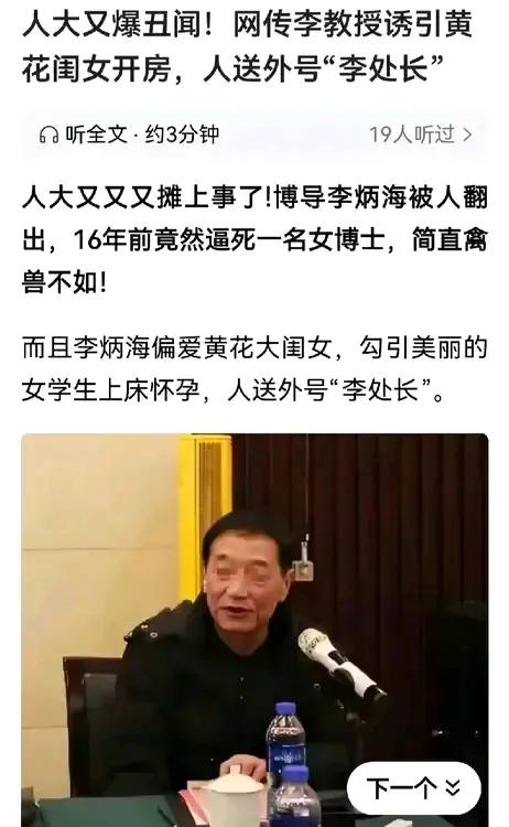 丑事不断,到底是谁任性? 这几天网上接连不断爆料,体制内人员涉嫌性侵她人,与人妻通奸等事件,令人咋舌。 人民大学王博导涉嫌性侵女学生事件余音未了,又有网传也是人大的李教授经常勾引漂亮女学生开房,人送外号“李处长”,甚至传出曾逼死女博士。大学校园如此当真令人心惊肉跳,但更令人瞠目结舌的是这样的事件校园并不是独一处,近日竟犹如蝴蝶效应般层出不穷,猛料不断。 江西万年县委书记涉嫌性侵女下属被实名举报。威海女子拒绝与镇干部发生性关系被打,汕头医院院长出轨人妻露骨对话等等相继遭到曝光,行为恶劣令人叹为观止。 这些行为和他们手中的权力是否息息相关?这一轮网络曝光虽然让他们为有权任性付出了代价,网络监督在其中发挥了巨大作用。但我们需要的不能仅仅是事后监督,更需要的是事前监督、日常监督,才能避免这些恶劣行为、违法乱纪行为发生,否则这些损害党风政风、师德医风事件频发,更是会带坏整个社会的风气,影响甚大!