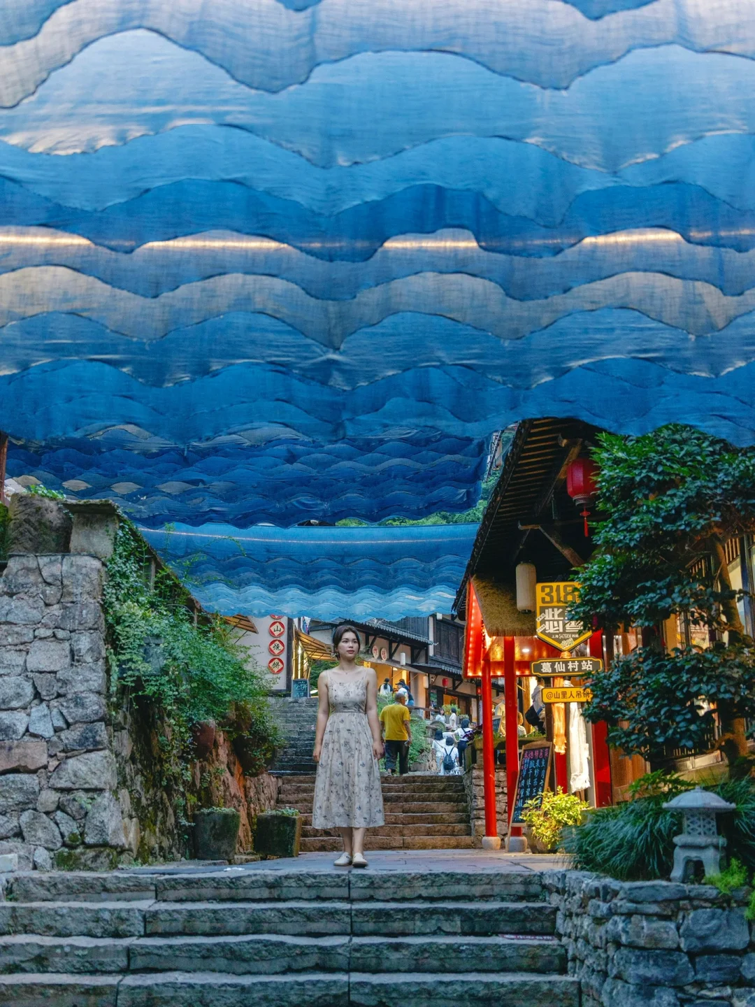 主街天幕挂满「扎染布艺」拍照氛围感💯