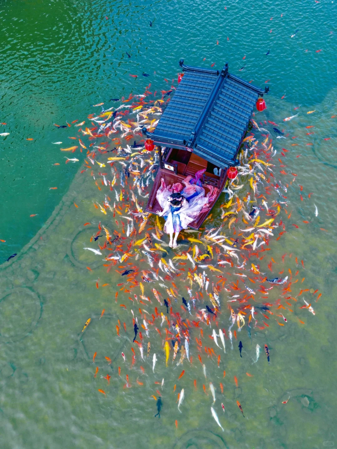 给鲤鱼喂食 🉑📷拍出「锦鲤环绕」大片效果