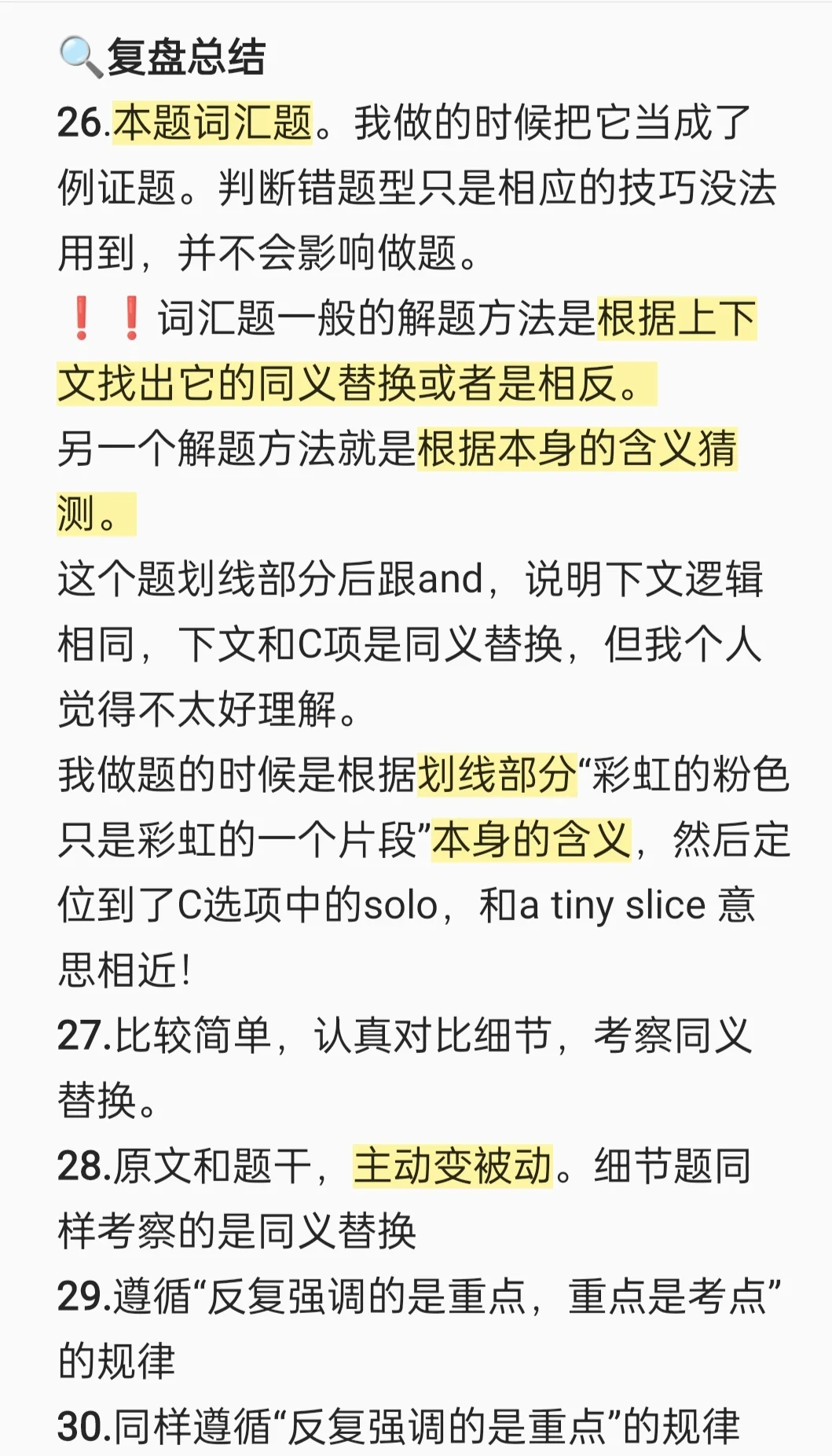 ❗❗词汇题一般的解题方法是根据上下文找出它的同义替换或者是相反。
