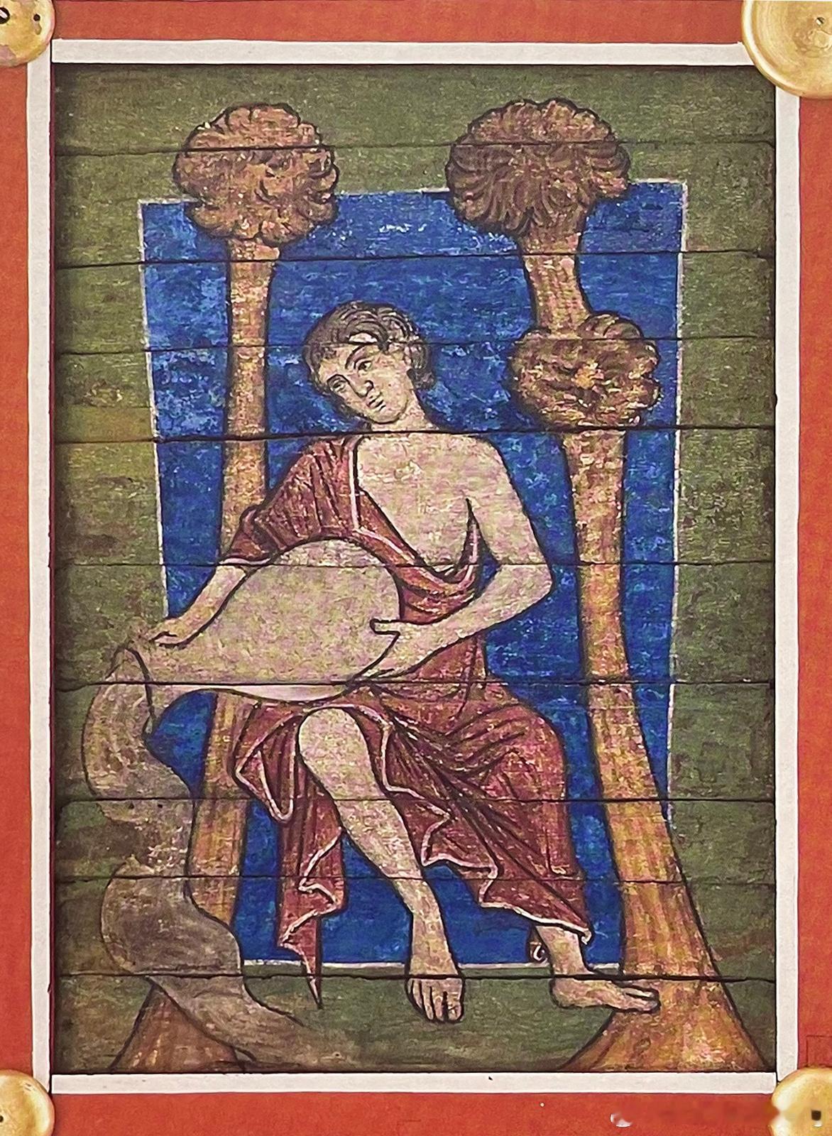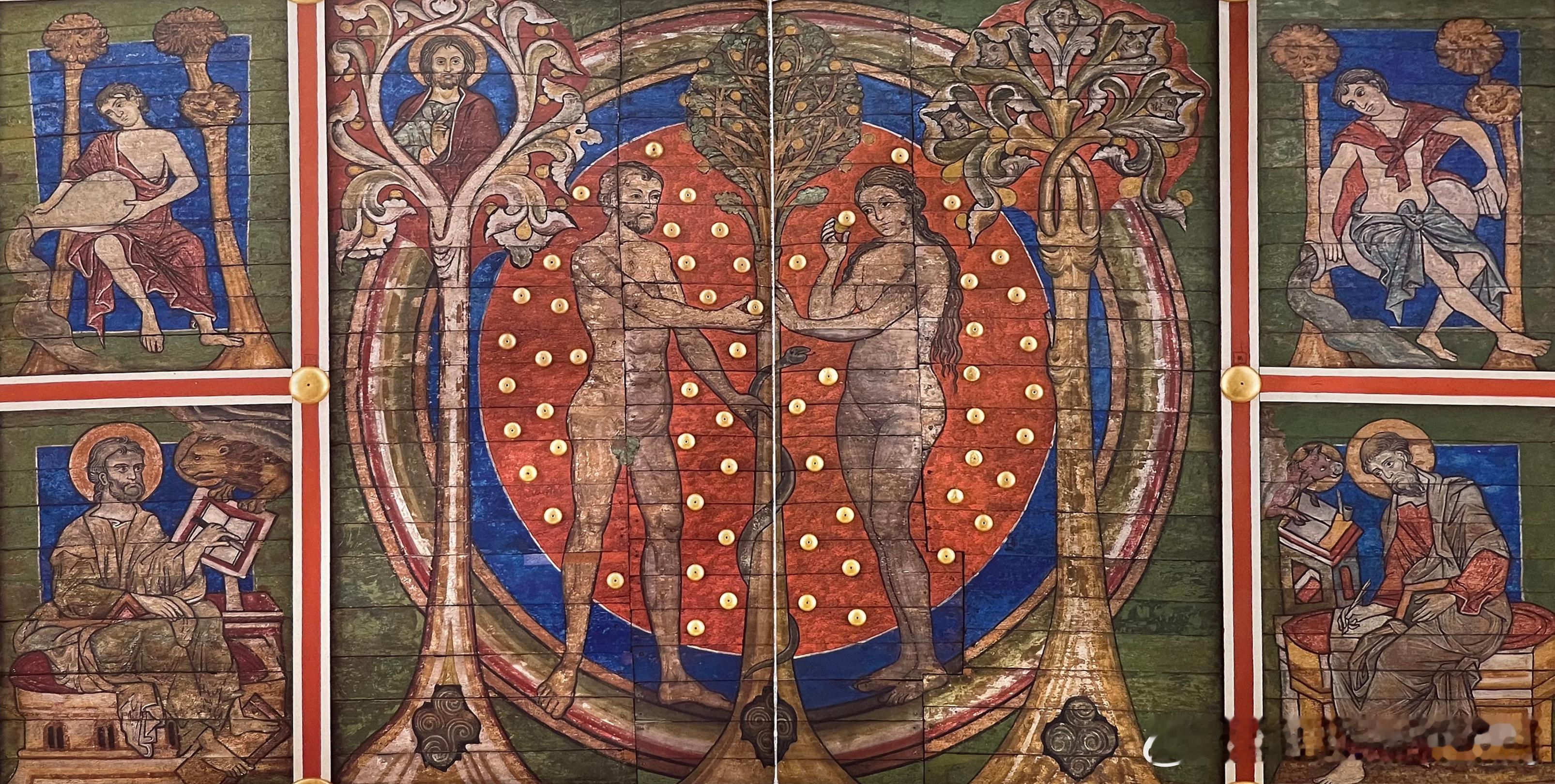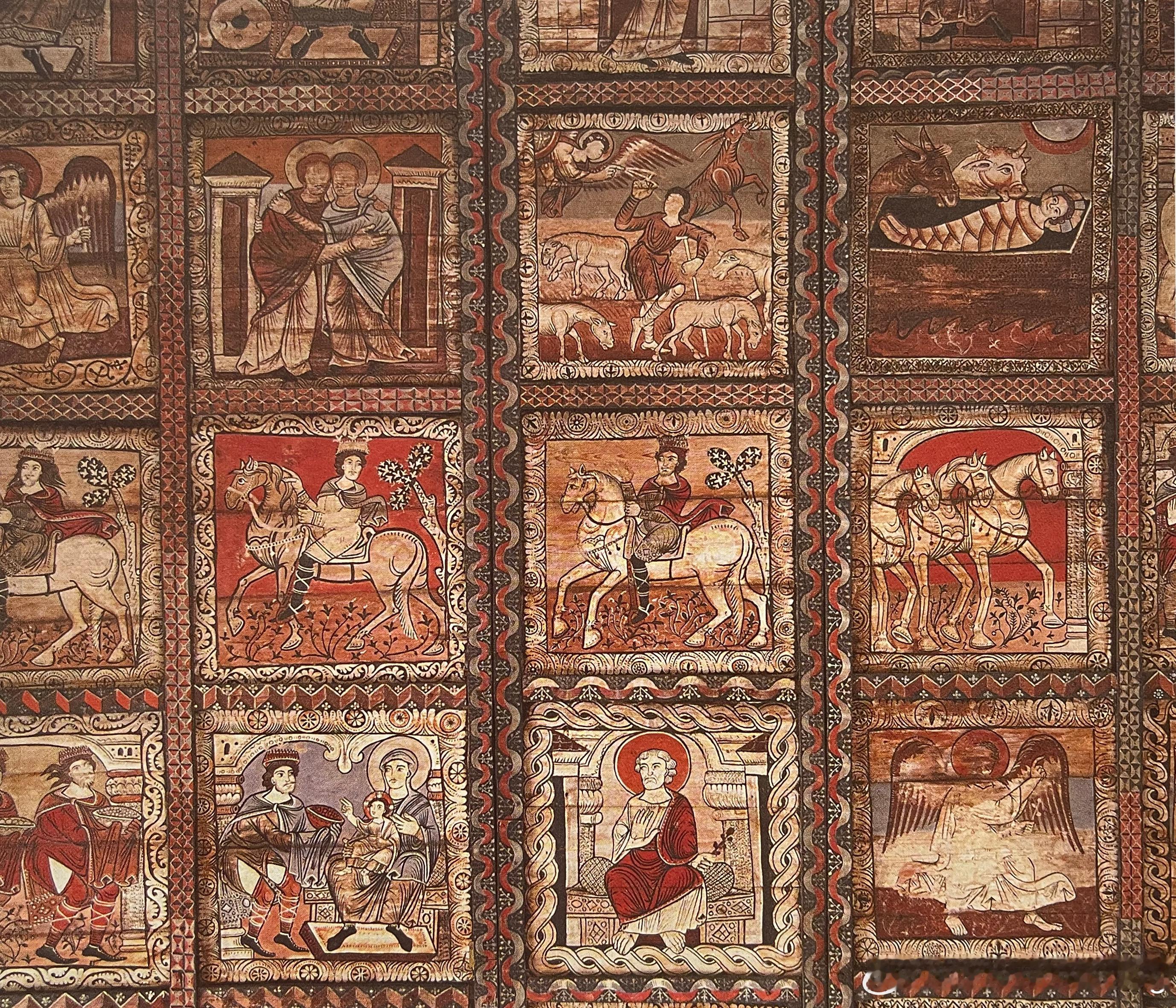 教堂若没有拱顶,便由画家们负责为木天花板平面进行设计。由于木材极易遭遇火灾,有彩绘装饰的罗马式木天花板仅有两幅留存至今,其中品质明显较佳的位于西尔德斯海姆的早期本笃会圣米迦勒教堂。或许与主教伯恩哈德(993-1022年在位)于1194年封圣后,其遗髑移送至此有关。长形天花板分为大小不等但排列整齐的图画,八福大图画左右各有两幅长形小图画,天花板长边有茛苕叶饰与圆形图案饰带,四个边角是福音书作者的象征。