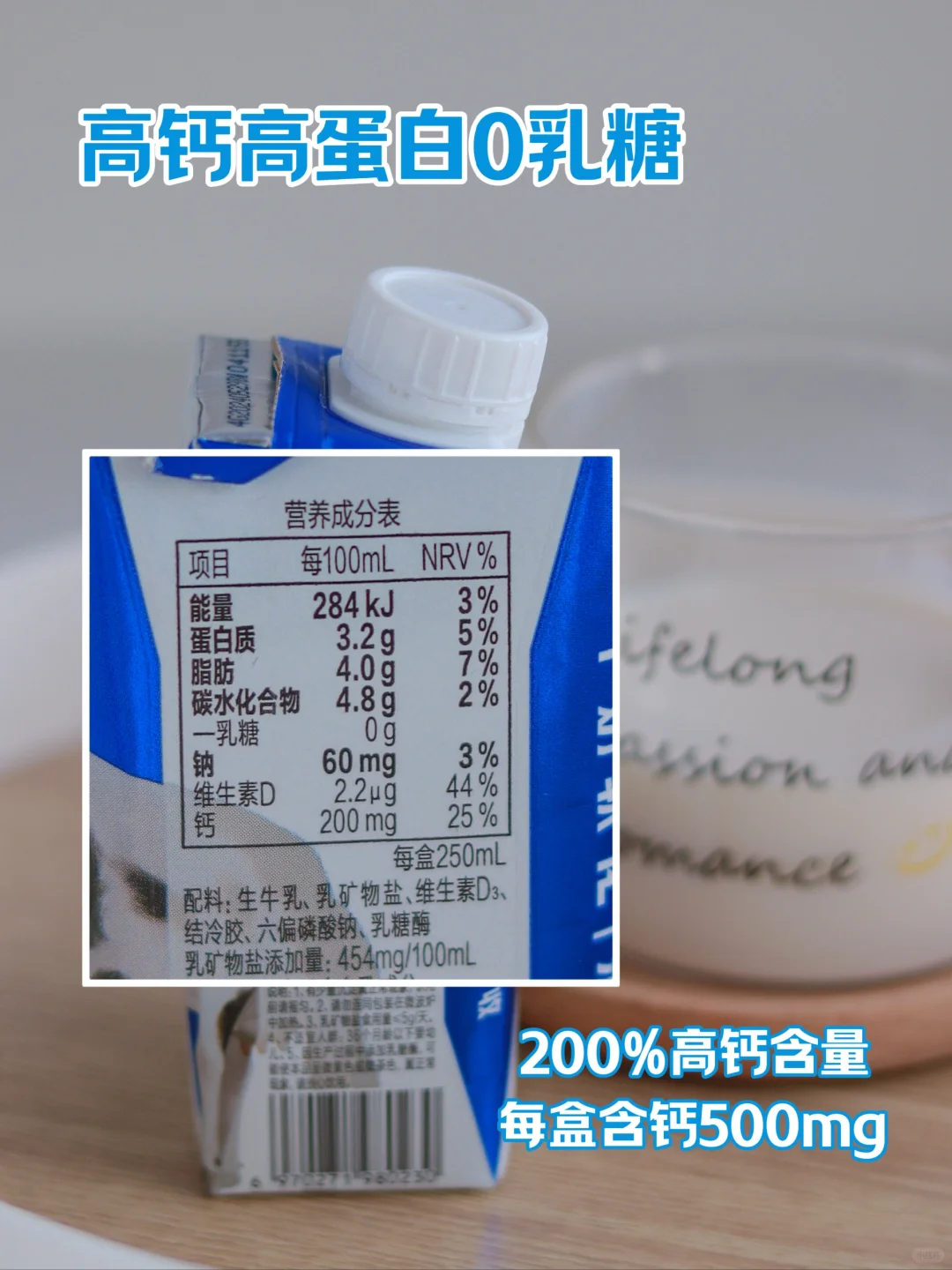 每盒都有500mg钙含量,喝一杯相当于喝50杯豆浆含有的钙含量呢